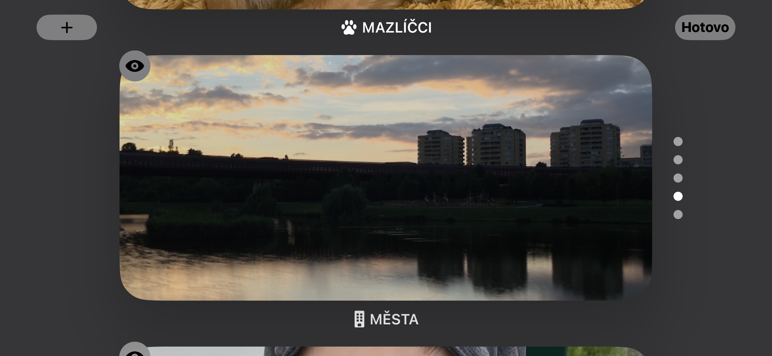- Posouváním nahoru a dolů můžete přepínat mezi kategoriemi Lidé, Města, Příroda, Mazlíčci a další.