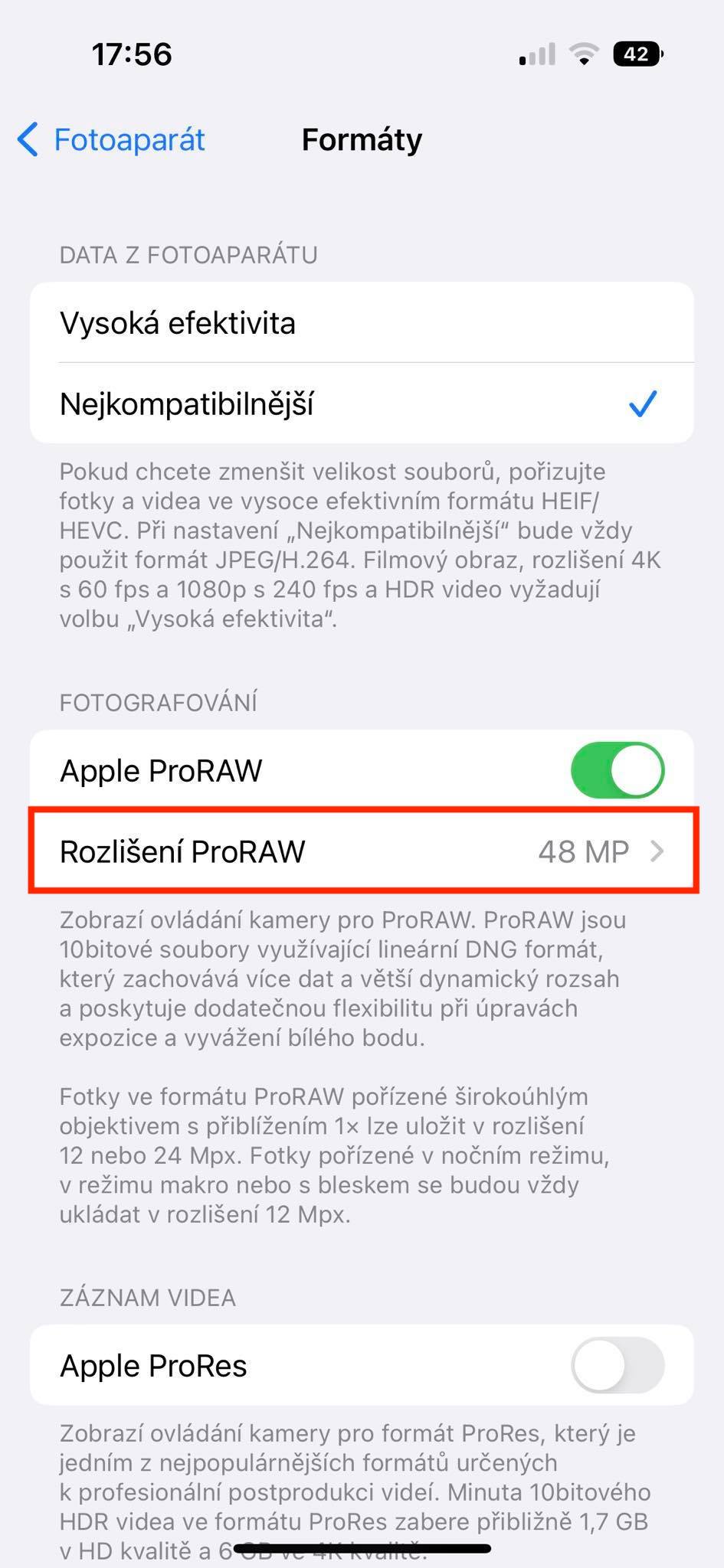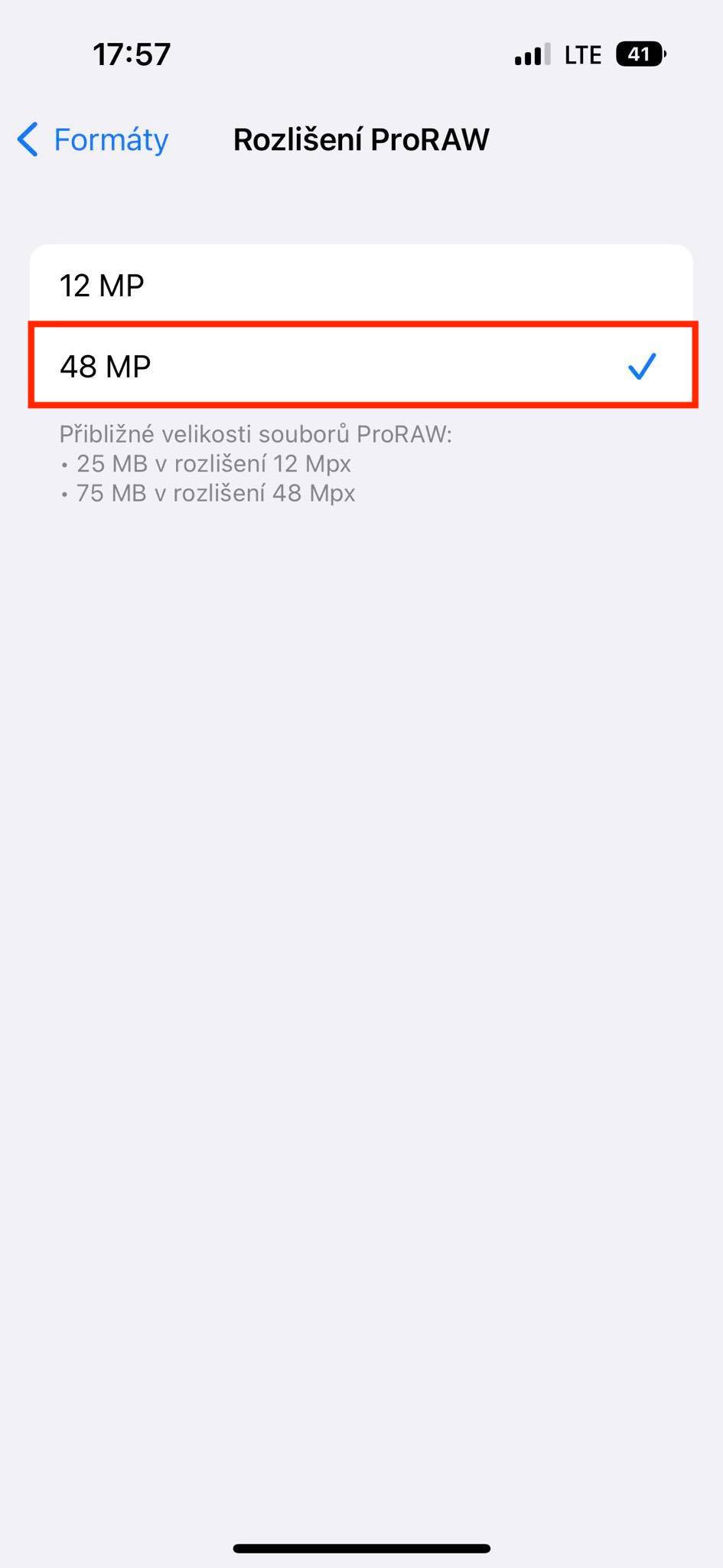 Jak na iPhonu změnit rozlišení při focení do RAW