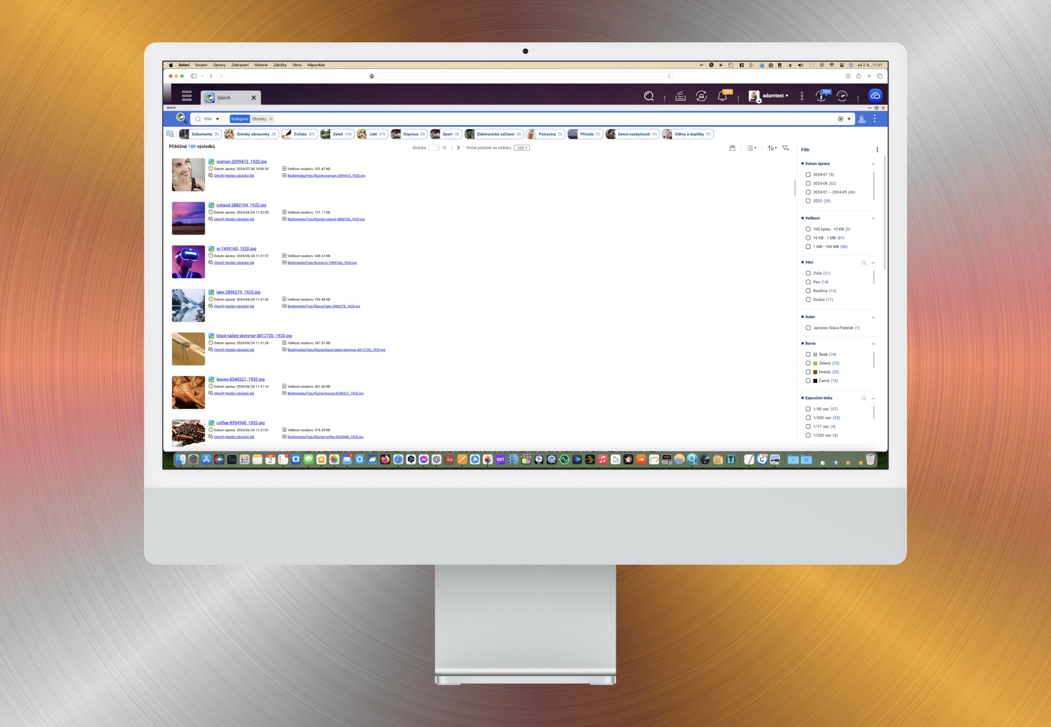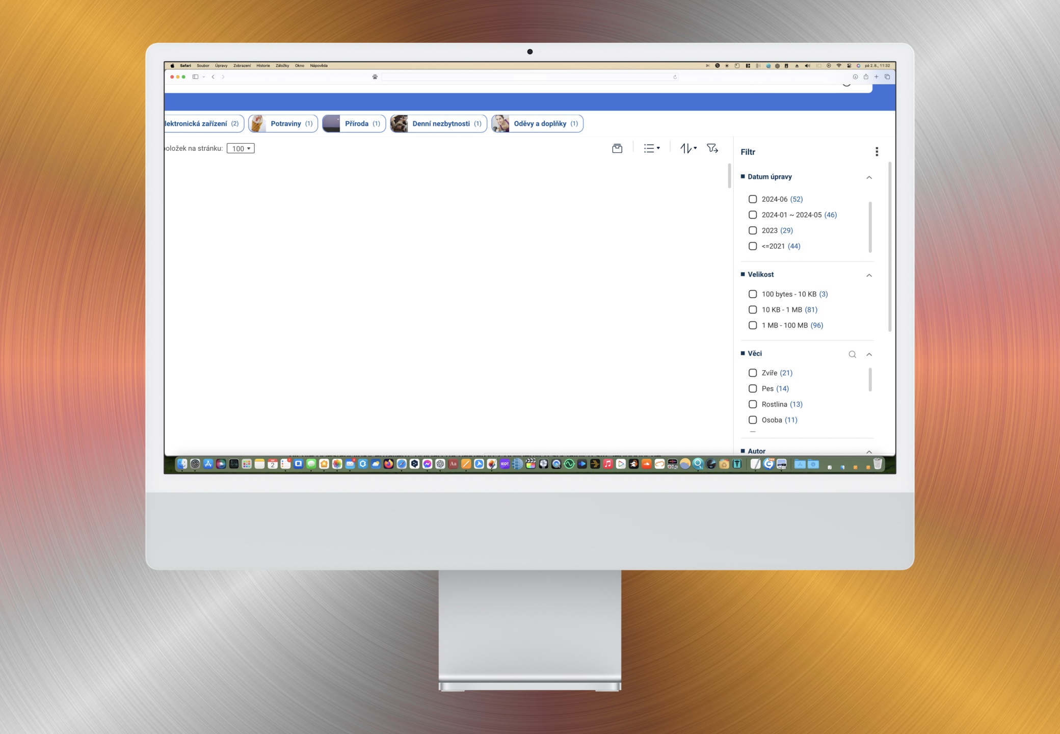Zaměříme-li se na obrázky po klepnutí na odkaz na sebe jako první upozorní výsledky identifikované umělou inteligencí, jež s ohledem na vaši sbírku nabídne rozčlenění typu Dokumenty, Snímky obrazovky, Zvířata, Zeleň, Lidé, Potraviny, Elektronická zařízení a další. Níže si pak lze vybrat počet snímků na stránku, vytvořit úlohu archivace, s níž otevřete Qfiling, zvolit si mezi zobrazením seznamu, náhledů a časové osy, ale též určit podobu řazení, případně skrýt postranní panel s filtry. Ten osobně vnímám jako jeden z nejužitečnějších prostředků detailního třídění. Kromě všech již zmíněných příznaků, zde totiž jsou k dispozici parametry jako: expoziční doba, clonové číslo, ohnisková vzdálenost, nastavení citlivosti ISO, ale také omezení podle konkrétního objektivu, značky i modelu fotoaparátu a nechybí ani podmínění tomu, zda byla fotografie pořízena s bleskem, či nikoli.