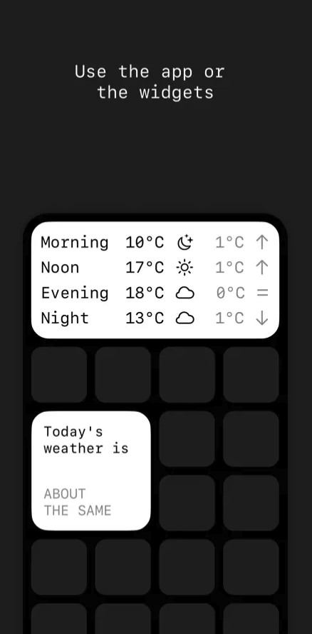 Aplikace Lazy Weather je navržena pro ty, kteří chtějí mít přehled o počasí co nejrychleji a nejjednodušeji. Místo toho, aby vám předhazovala spoustu detailních údajů, které možná ani nepotřebujete, Lazy Weather se zaměřuje na to hlavní: jak se teplota změnila oproti včerejšku. Díky tomu se můžete snadno rozhodnout, co si obléct, aniž byste museli procházet složitými grafy a předpověďmi. Jednoduše, rychle a bez zbytečných informací – přesně taková je aplikace Lazy Weather.