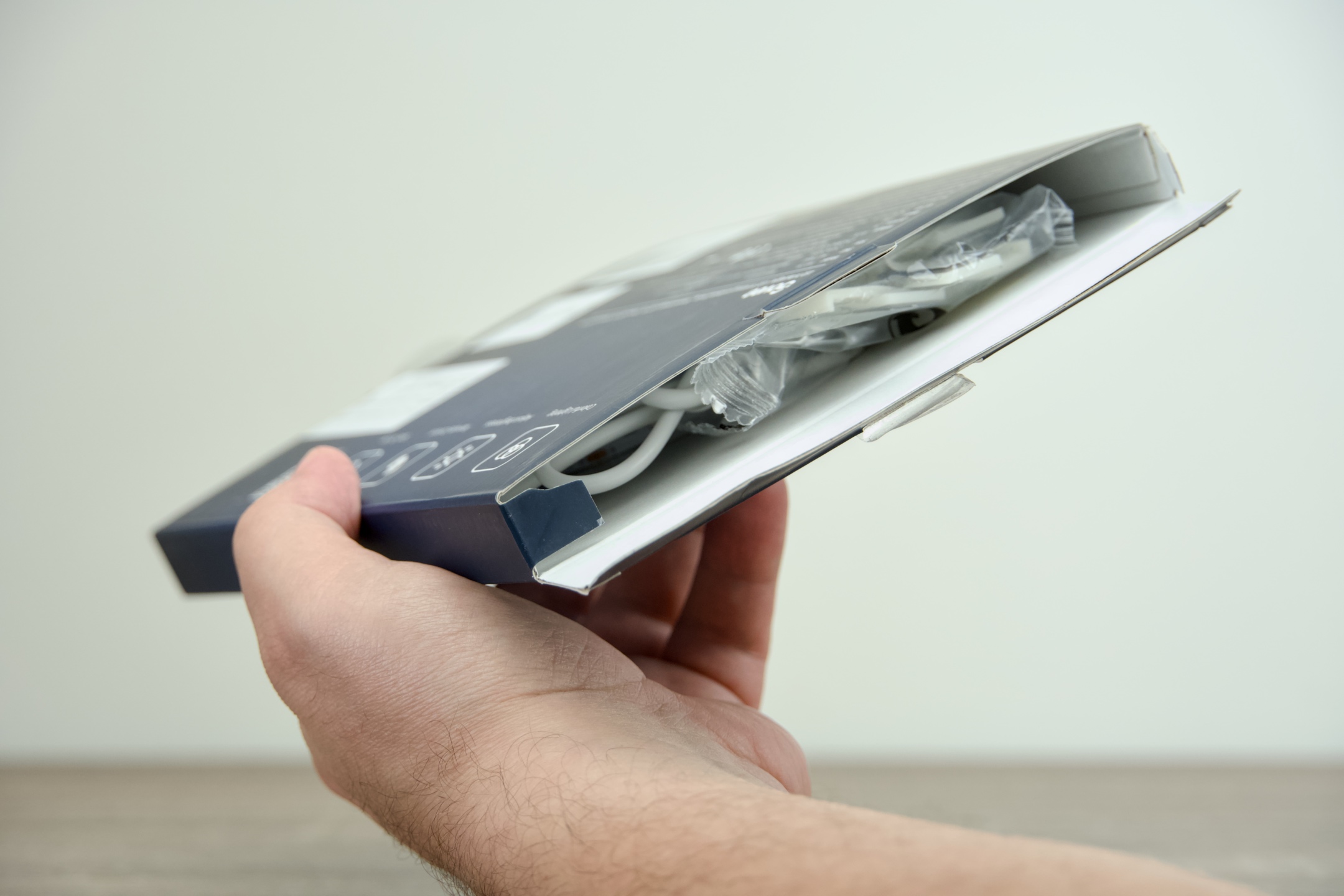 Bílý, centimetr široký LED pásek opatřený zezadu samolepící vrstvou má délku 3 m. Ta je však rozdělena na čtyři části – dvě metrové pro horní i dolní okraj obrazovky a dvě o polovinu menší připevňující se po stranách. Mezi nimi se nalézá 20cm ohebný úsek, díky čemuž je zahnutí v rozích bezproblémové. Na konci na půlmetrový kabel navazuje ovládací box se třemi tlačítky (taktéž bílý), který ke vzdálenosti přidá zhruba 6 cm, a další metr od něj se pak nachází konektor USB. Hmotnost bez dálkového ovládání i kotouče činí pouhých 90 g, takže si s ní samolepící plocha v kombinaci s přiloženými klipy s přehledem poradí.