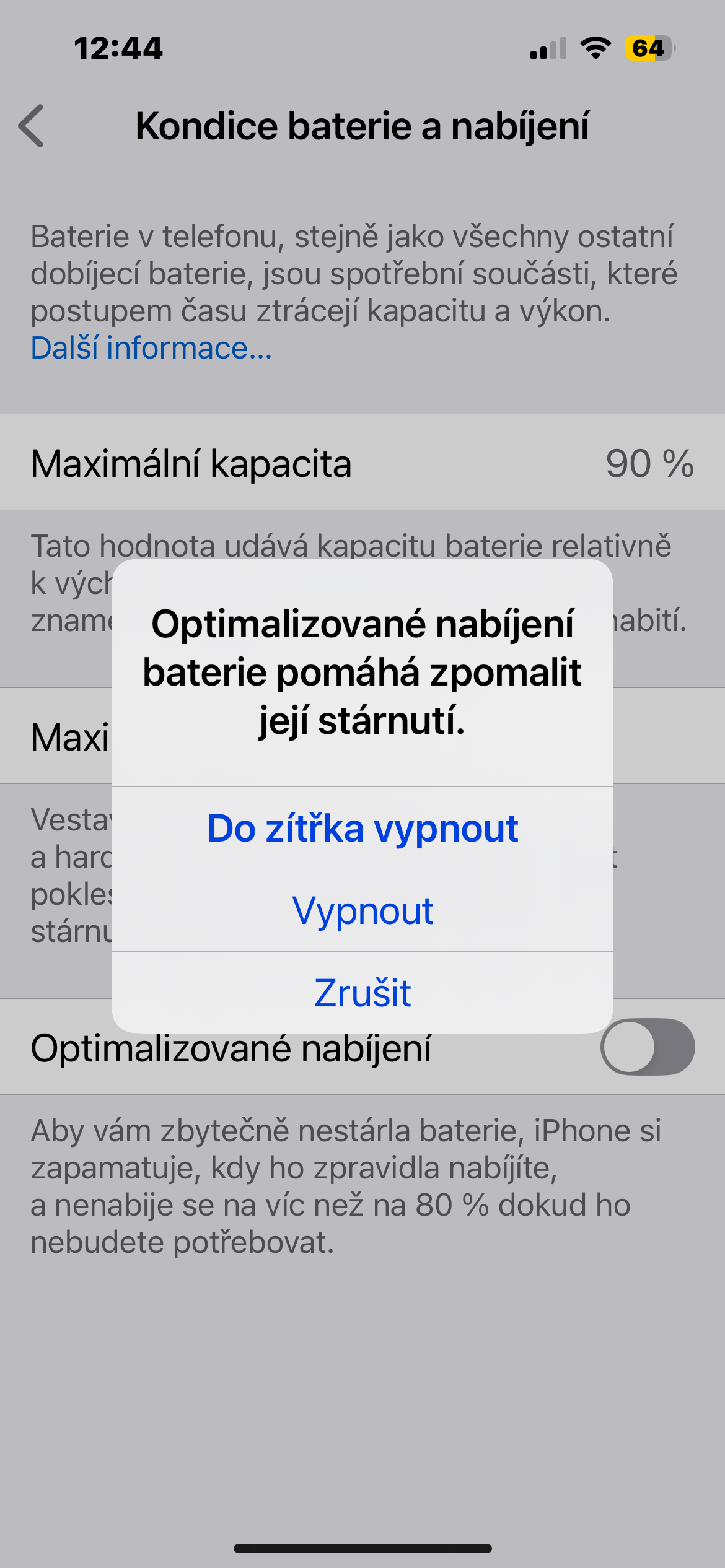 Co se stane, když vypnu optimalizované nabíjení?