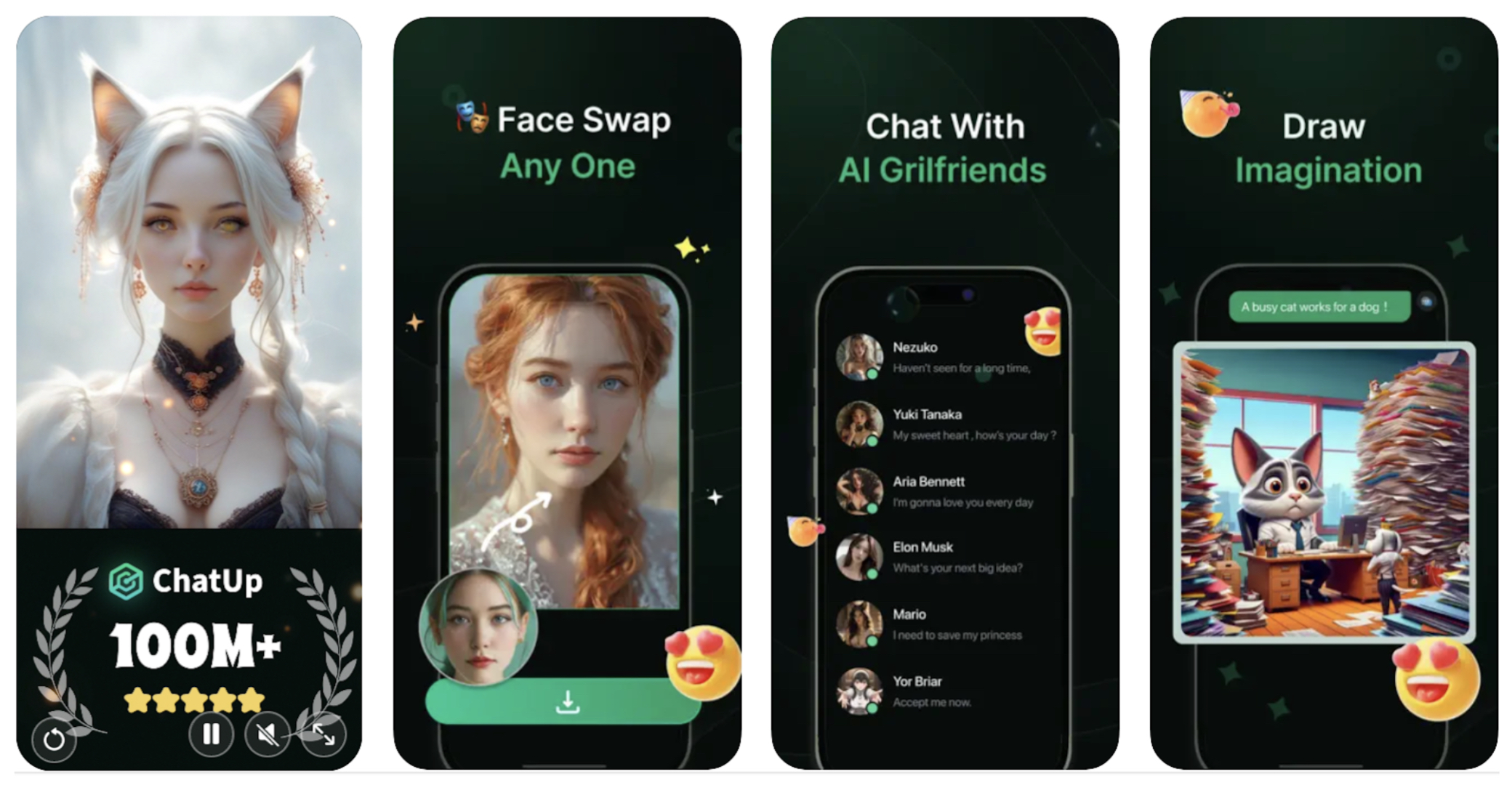 S více než milionem stažení přináší aplikace ChatUp AI pro iOS nativní, plynulý zážitek. Funkce výměny tváří je hlavním lákadlem, které vám umožní stát se kýmkoli, nebo vytvořit zábavné žerty a umělecké fotografie. Je to ideální nástroj pro zábavu i kreativitu.