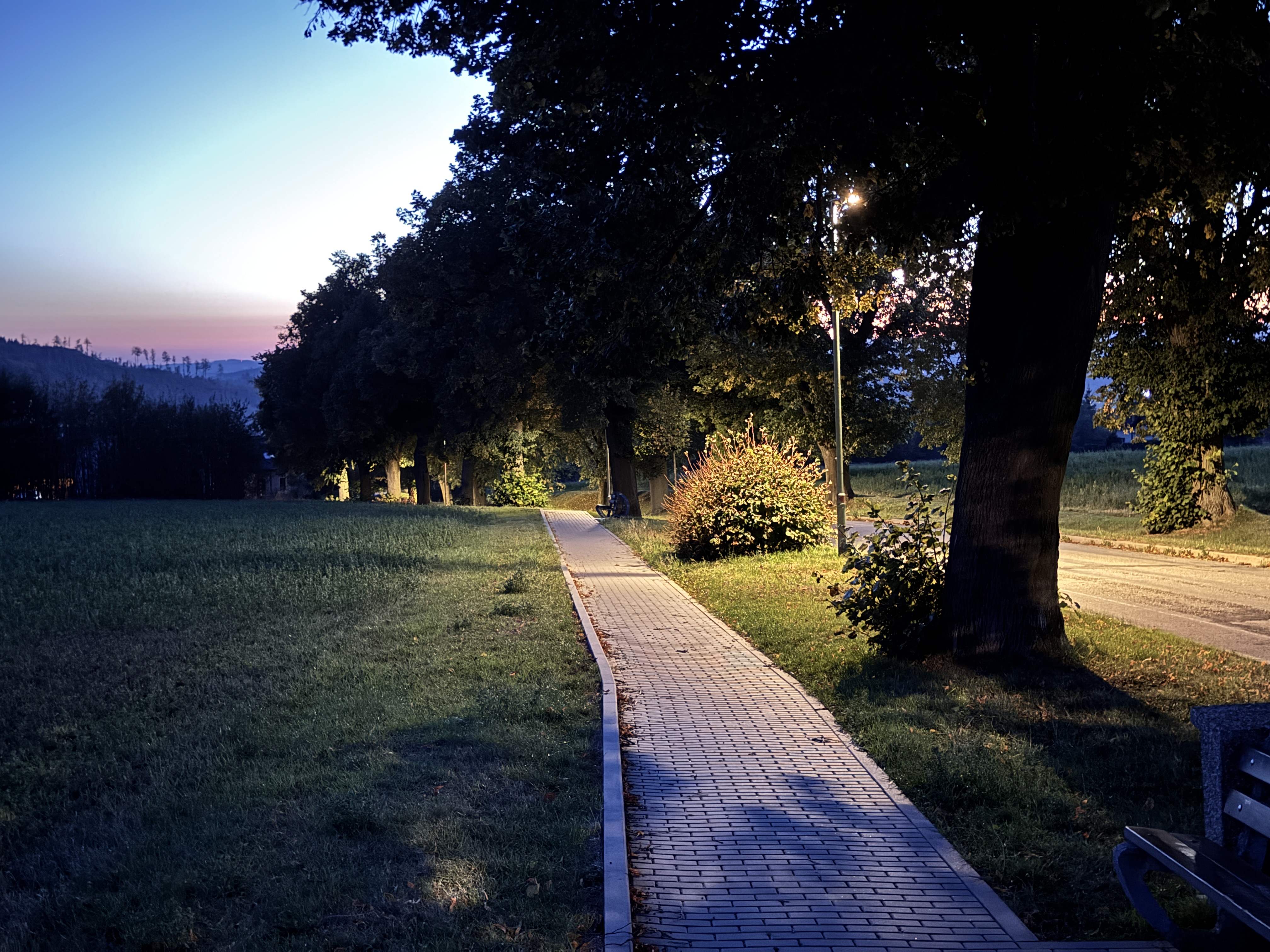Focení za polotmy či tmy je pro iPhony obecně i nadále docela problematická záležitost. Ačkoliv fotky vypadají tak, že procházka probíhala docela pozdě večer, faktem je, že jsou snímky foceny kolem 19. hodiny, kdy ještě žádná velká tma není. Bez aktivního nočního režimu jsou pak snímky v některých případech takřka nepoužitelné, jelikož na nich není vidět to důležité – tedy třeba osoba, kterou fotíte. Úroveň detailů, které dokáží iPhony 15 Pro a 16 Pro zachytit, mi pak přijde velmi podobná a velmi blízké jsou si fotky i z hlediska barev. Přijde mi však, že u iPhonů 16 Pro občas moc hezky zafunguje jejich antireflexní vrstva na objektivech, která eliminuje odlesky světla. Jasně, nelze hovořit o 100% spolehlivosti a o úplném odstranění odlesků jako takových, nicméně pokrok zde vidět za mě je. I nadále ale platí, že focení za polotmy či tmy není věc, ve které by iPhony vynikaly.