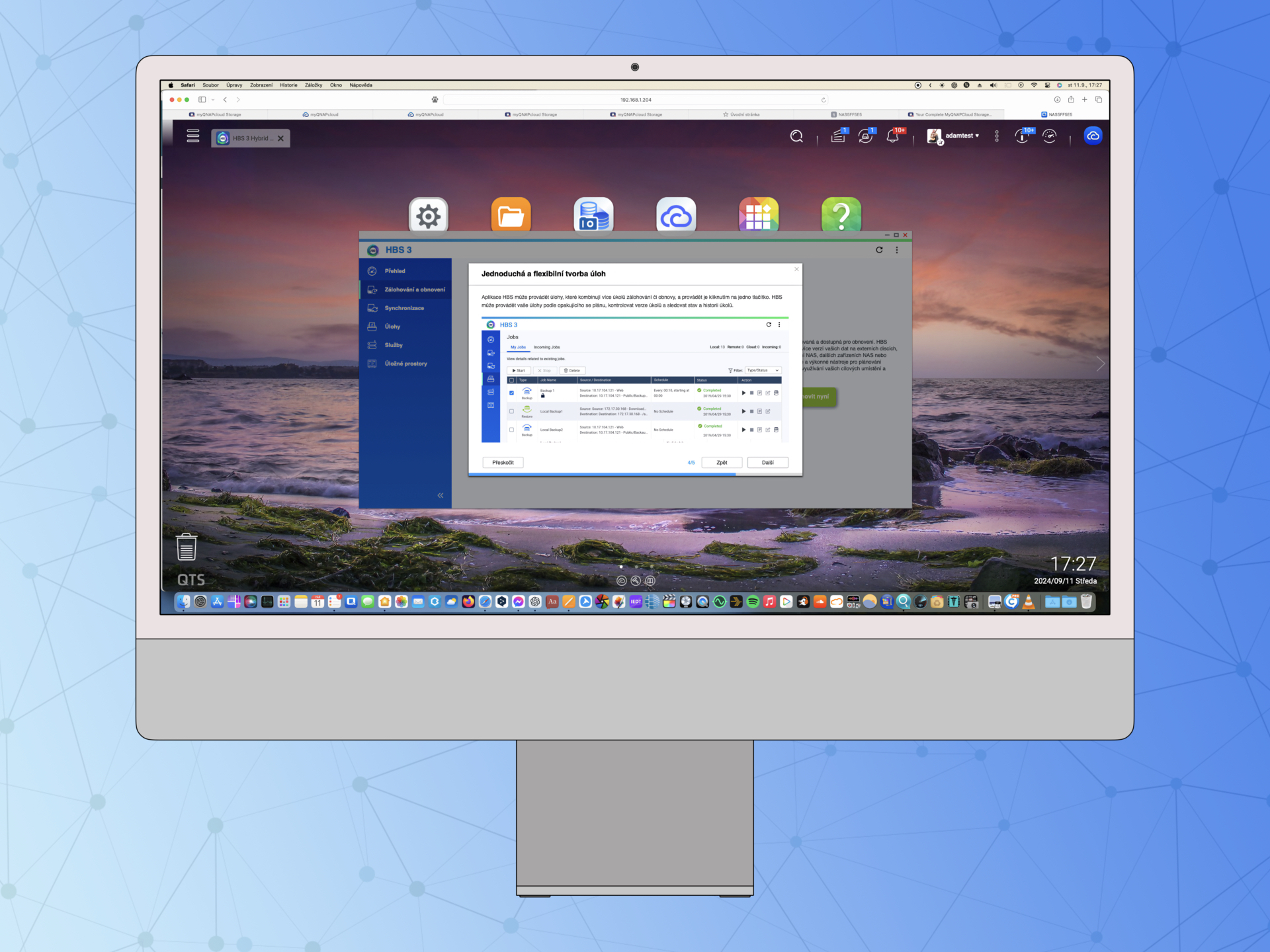 Po spuštění a vytvoření prostoru můžete zvolit umístění a naplánovat požadovaný úkon. Mezi myQNAPcloud Storage a vybraným úložištěm, jímž může být kromě disku NAS klidně třeba Dropbox, Azure nebo Disk Google, pak bude dle rozvrhu probíhat komunikace, která zajistí, že všechny požadované soubory budou adekvátně nakopírovány a vy se nebudete muset strachovat o jejich dostupnost i zabezpečení. Možností nastavení je zde celá řada, nevyjímaje přehled a správu existujících úloh, výběr parametrů synchronizace či povolení služeb, jako je Rsync nebo Time Machine od Applu. Díky Hybrid Backup Sync snadno propojíte svůj NAS a několik účtů náležejících již využívaným službám, přičemž bez problémů vyselektujete to důležité, zatímco vám k tomu myQNAPcloud Storage poskytne spolehlivou cloudovou zálohu.