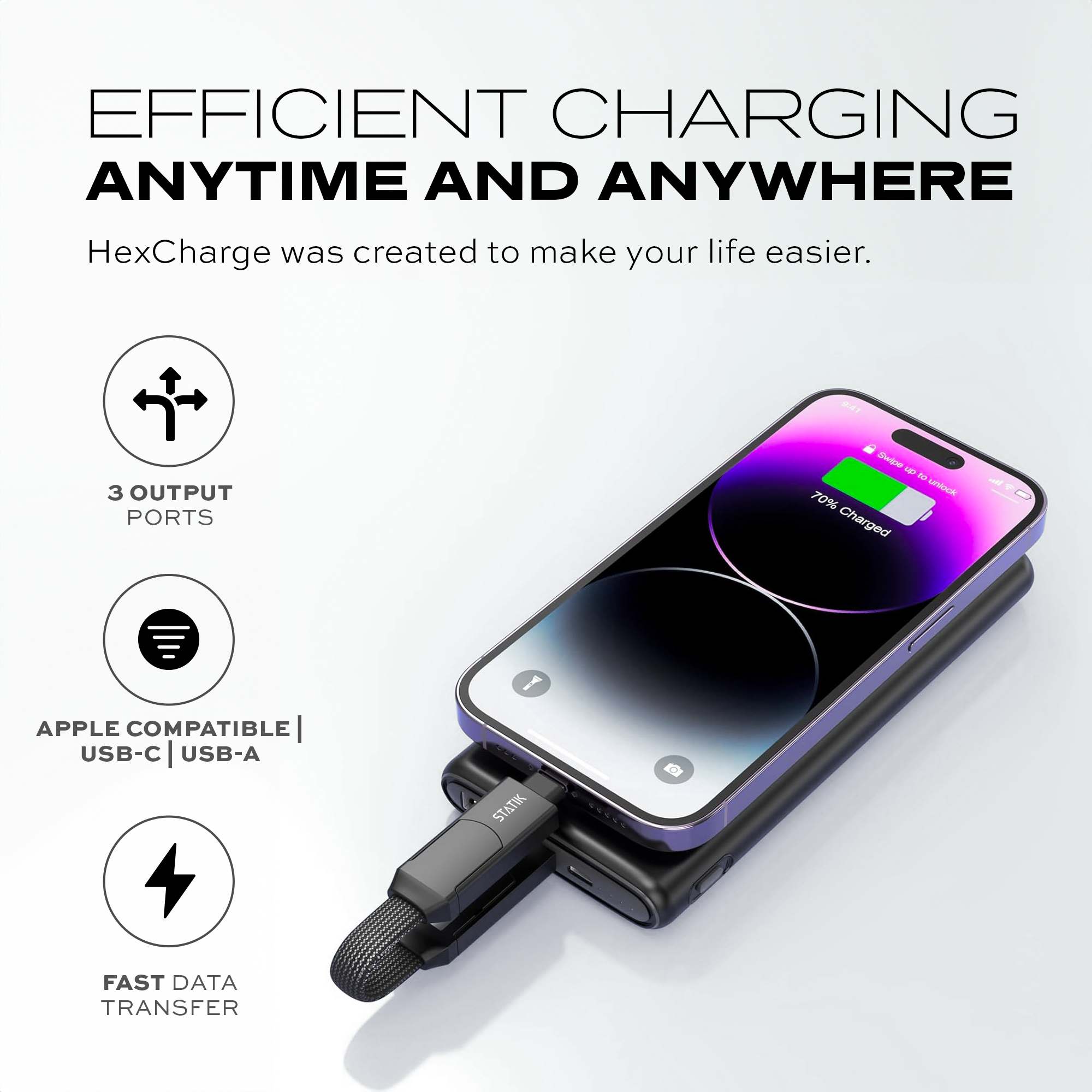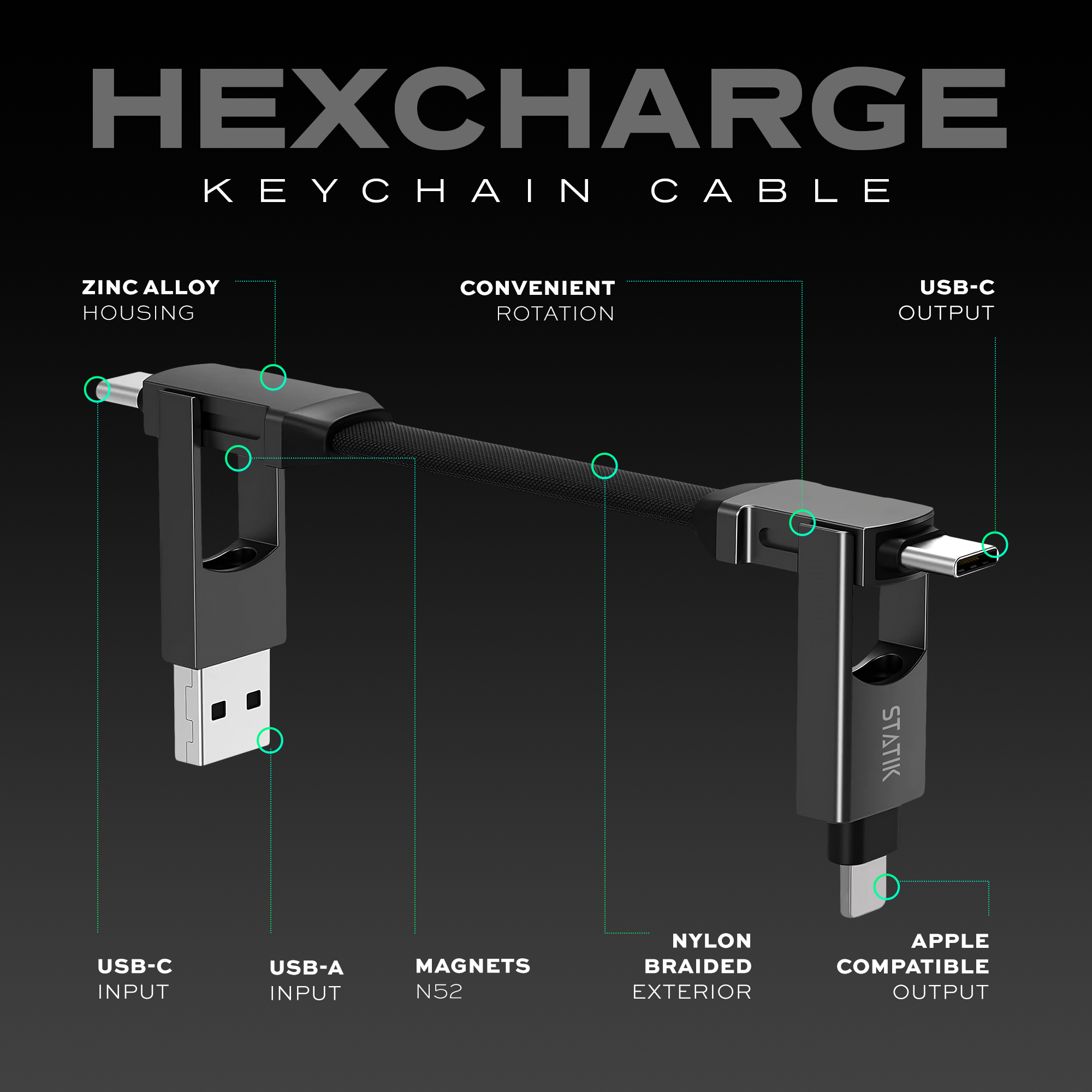 Univerzální kabel STATIK® HEXCHARGE je perfektním řešením pro každého, kdo chce zjednodušit své nabíjecí potřeby. Ať už potřebujete rychlé nabíjení pro notebook, telefon, tablet nebo starší zařízení, HEXCHARGE vás nezklame. Navíc jeho magnetické konektory chrání vaše zařízení a zajišťují dlouhou životnost nabíjecích portů. Už žádné hledání správného kabelu – s HEXCHARGE máte vše na dosah ruky!