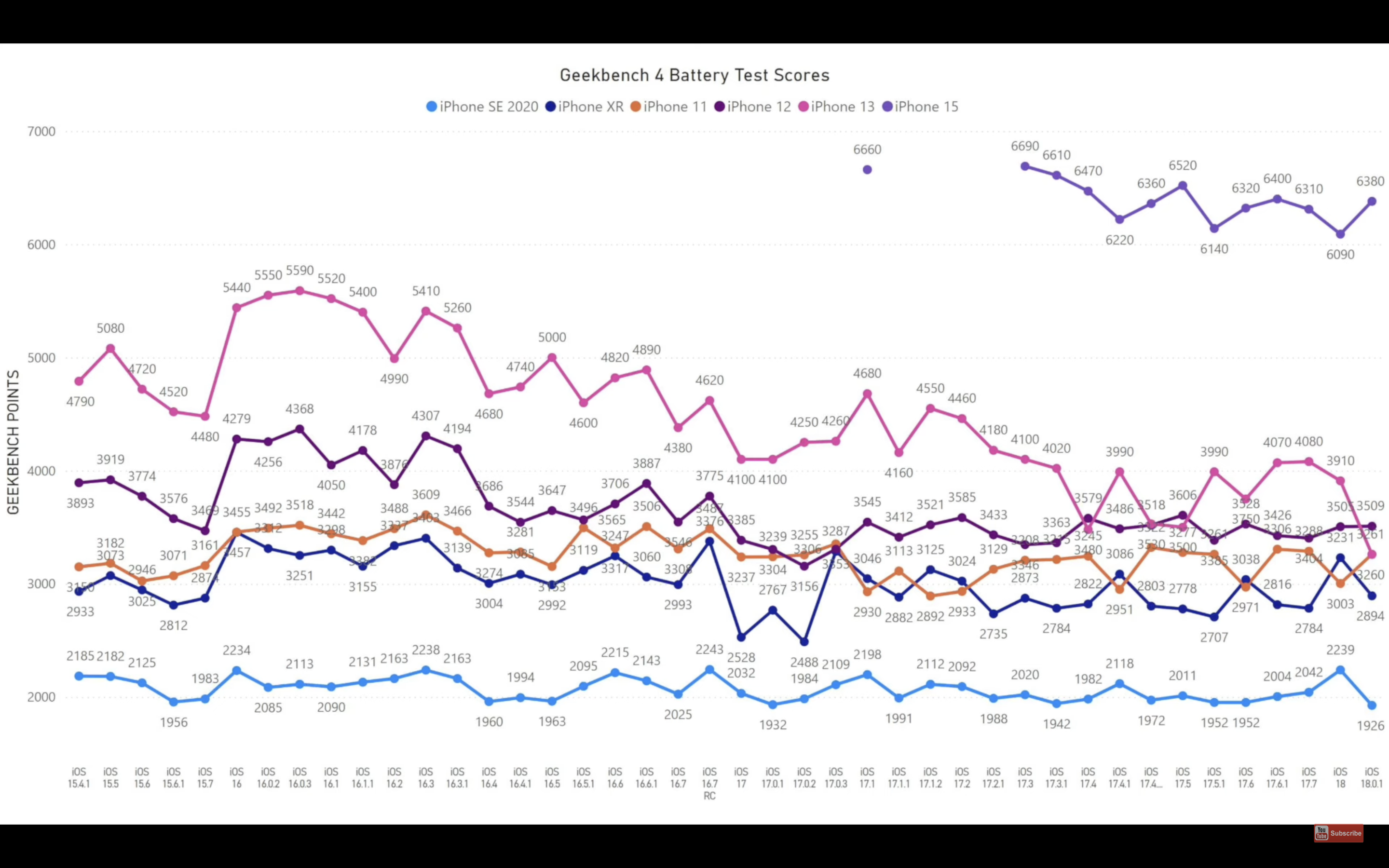 Apple po poměrně dlouhém čekání vydal první menší aktualizaci iOS 18. Je zřejmé, že aktualizace s očíslováním iOS 18.0.1 přináší jen několik málo bezpečnostních záplat a zásadnější věci dorazí až spolu s iOS 18.1. Nicméně jak bylo vidno v minulosti, i menší aktualizace dokáží pěkně zamávat s výdrží baterie. Na tento neduh se podrobněji podíval youtubový kanál iAppleBytes, jenž změřil rozdíly na iPhonech SE 2020, XR, 11, 12, 13 a 15. Test byl proveden v aplikaci GeekBench. Pokud se na test chcete podívat v plné parádě, naleznete jej pod odstavcem.