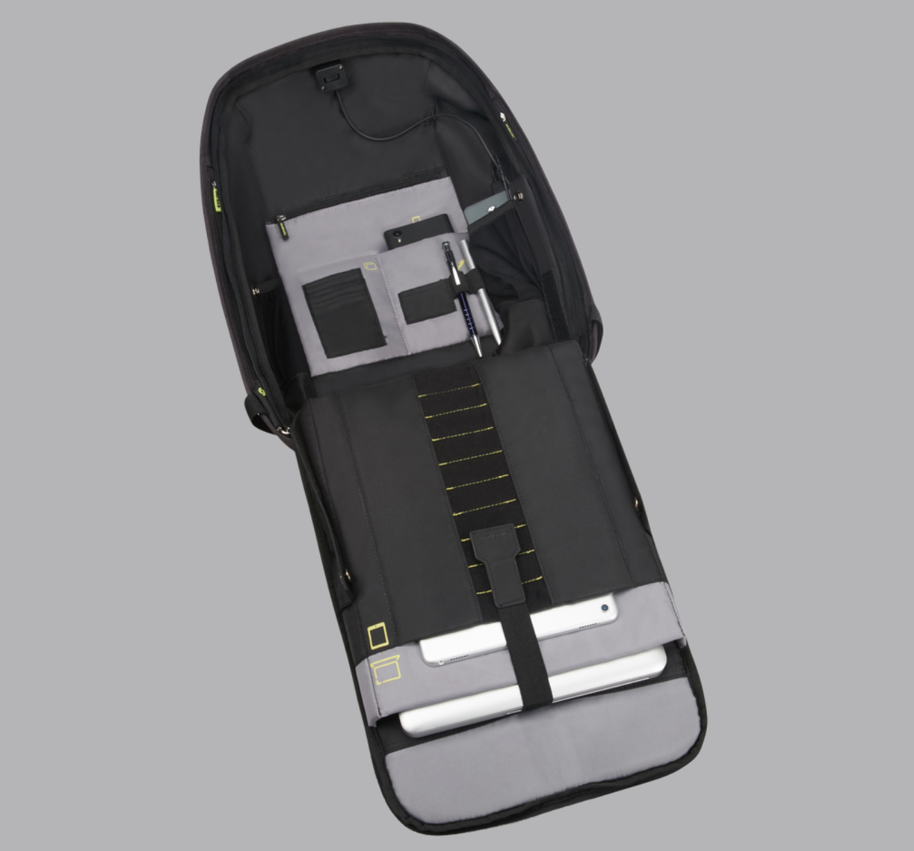 Jakmile je váš Apple notebook správně vložen, proveďte kroky k jeho zabezpečení uvnitř tašky pro zvýšenou ochranu. Organizujte příslušenství v dalších kapsách, abyste zabránili poškrábání a udrželi pořádek. Uchovávejte menší předměty daleko od MacBooku, abyste se vyhnuli kontaktu. Ujistěte se, že jsou všechny zipy bezpečně uzavřeny, aby se zabránilo náhodnému otevření během přepravy. Pokud má váš batoh nebo taška pro MacBook Pro nastavitelné popruhy, ujistěte se, že jsou utažené, ale ne příliš pevné, aby se zabránilo zbytečnému tlaku. Nastavte popruhy pro batohy nebo tašky přes rameno na délku, která se vám bude cítit pohodlně na ramenou. U tašek přes tělo je umístěte diagonálně přes tělo pro bezpečné uložení.