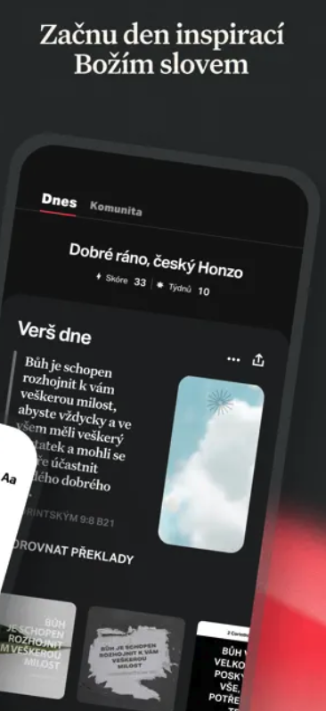 Nenechte se zmást názvem – aplikace Bible vám do vašeho iPhonu přináší nejen Písmo jako takové (včetně audiostopy), ale také vybrané verše na každý den, inspirativní programy na nejrůznější témata, podněty k zamyšlení nebo třeba inspiraci k modlitbám. Překlad nebiblických textů občas pokulhává, ale aplikace jako taková rozhodně není špatná.