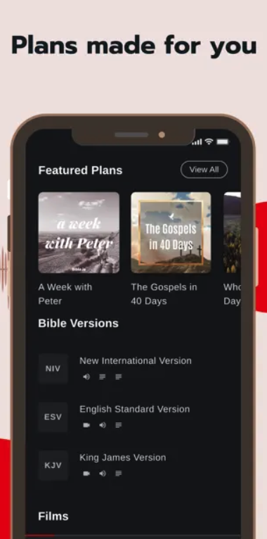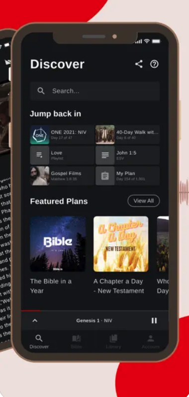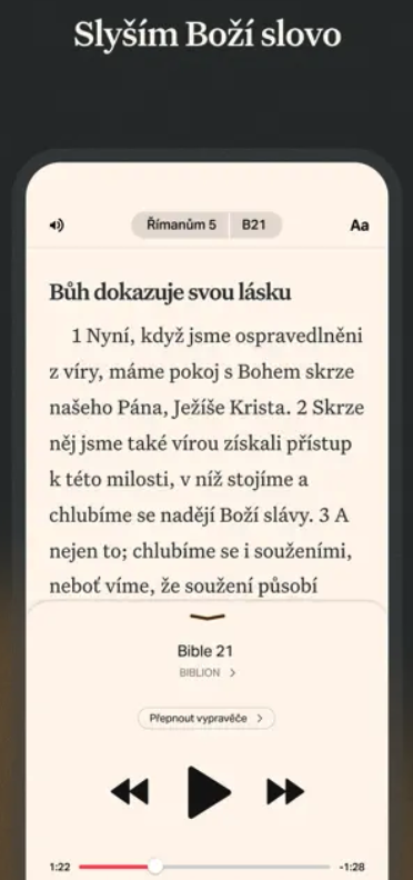 Aplikace Bible.is je vhodná zejména pro ty, kteří si rádi poslechnou audioverzi Písma. V češtině nabízí opravdu kvalitní audiostopu, k dispozici jsou ale také všechny ostatní překlady. Pokud si v aplikaci vytvoříte účet, můžete si zakládat playlisty, ukládat obsah mezi oblíbené a spoustu dalšího. Podobně jako aplikace Bible, kterou zmiňujeme na začátku článku, nabízí i Bible.is nejrůznější tematické plány a další materiály pro zamyšlení.