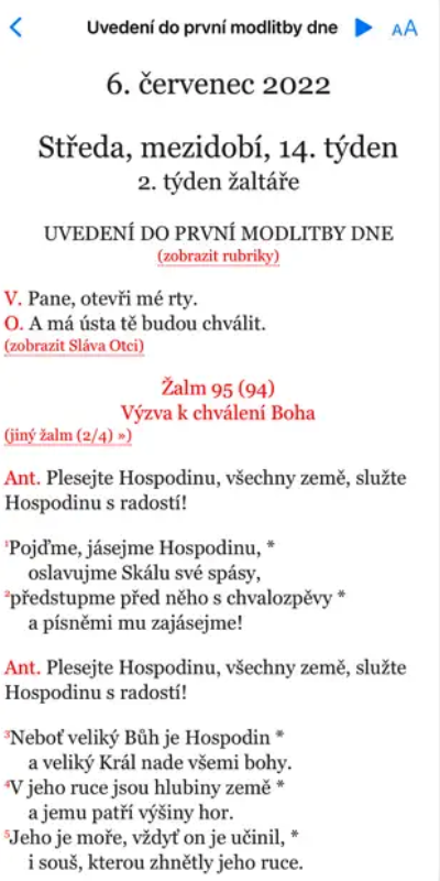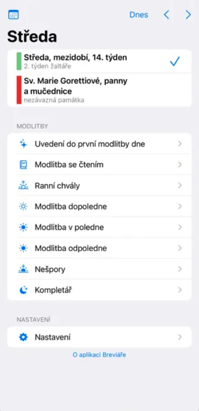 Breviář už je záležitostí pro ostřílené „modlitební matadory“. Tato vícejazyčná aplikace nabízí takzvanou „liturgii hodin“ – denní modlitbu církve. Pokud se čirou náhodou zkoušíte modlit breviář a máte někdy problém zorientovat se v jeho knižní podobě, aplikace pro vás vše potřebné sama vygeneruje. Design sice není kdovíjak inovativní a moderní, svůj účel ale Breviář plní, nabízí podporu tmavého režimu a poměrně dost možností přizpůsobení.