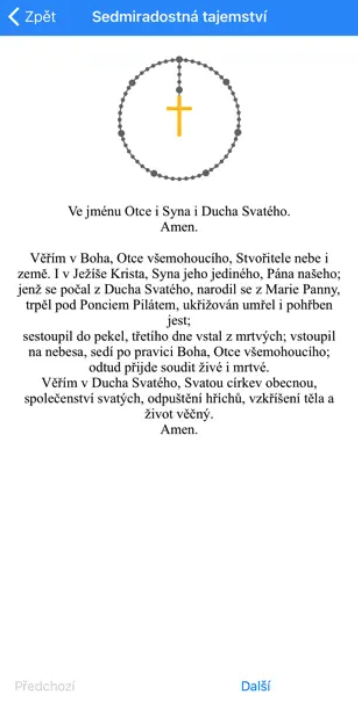 Svou vlastní aplikaci má i modlitba růžence. Když se do ní podíváte, rychle zjistíte, proč tomu tak je. Modlitba růžence není jen jedna, má svá pravidla, a pokud se zrovna nerozhodnete být růžencovým anarchistou, může se vám hodit i tato aplikace. Design aplikace je velmi jednoduchý, kromě textových modliteb si můžete pustit i audiostopu, ta je nicméně namluvená strojovým hlasem.