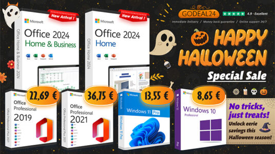 V halloweenském obřím výprodeji nabízí Godeal24 klíč Office 2021 Pro Plus za hvězdnou cenu, která sráží původní maloobchodní cenu o více než 200 €. Místo 239,99 € jej tedy nyní můžete získat za pouhých 36,75 €, což představuje obrovskou slevu 85 %. K dispozici jsou také dvě edice Office 2024: Office Home 2024 stojí 99,99 €, což je téměř o 50 € méně než původní cena 149,99 €. A co víc, Office Home & Business 2024 je také za neuvěřitelnou cenu 169,99 €! Pro zařízení se systémem Windows vyžaduje Office 2024 systém Windows 10 nebo novější. Nejnovější Windows 11 Pro stojí pouze 13,55 €! Uživatelé se staršími zařízeními mohou zaznamenat pomalejší výkon nebo omezený přístup k některým funkcím. Pořiďte si Microsoft Office a vaše nová produktivita začíná zde.