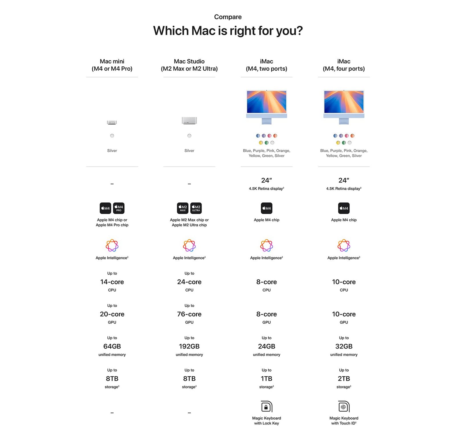 Tajemství okolo designu nové generace Macu mini jsou ze značné části pryč. Před pár hodinami totiž jeho vzhled podle všeho propálil americký Amazon, který na svůj eshop omylem umístil na pár minut srovnání nových Maců s čipy M4 v grafice, kterou naleznete i přímo na webu Applu. A jelikož svůj obchod na Amazonu provozuje právě i samotný Apple, je velmi pravděpodobné, že grafika, která se samozřejmě podařila mnoha uživatelům ještě před stažením vyscreenovat, pochází přímo z jeho dílny a tedy vzhled nového Macu mini hodiny před jeho oficiální představením odhaluje. A s ním i spoustu technických specifikací.