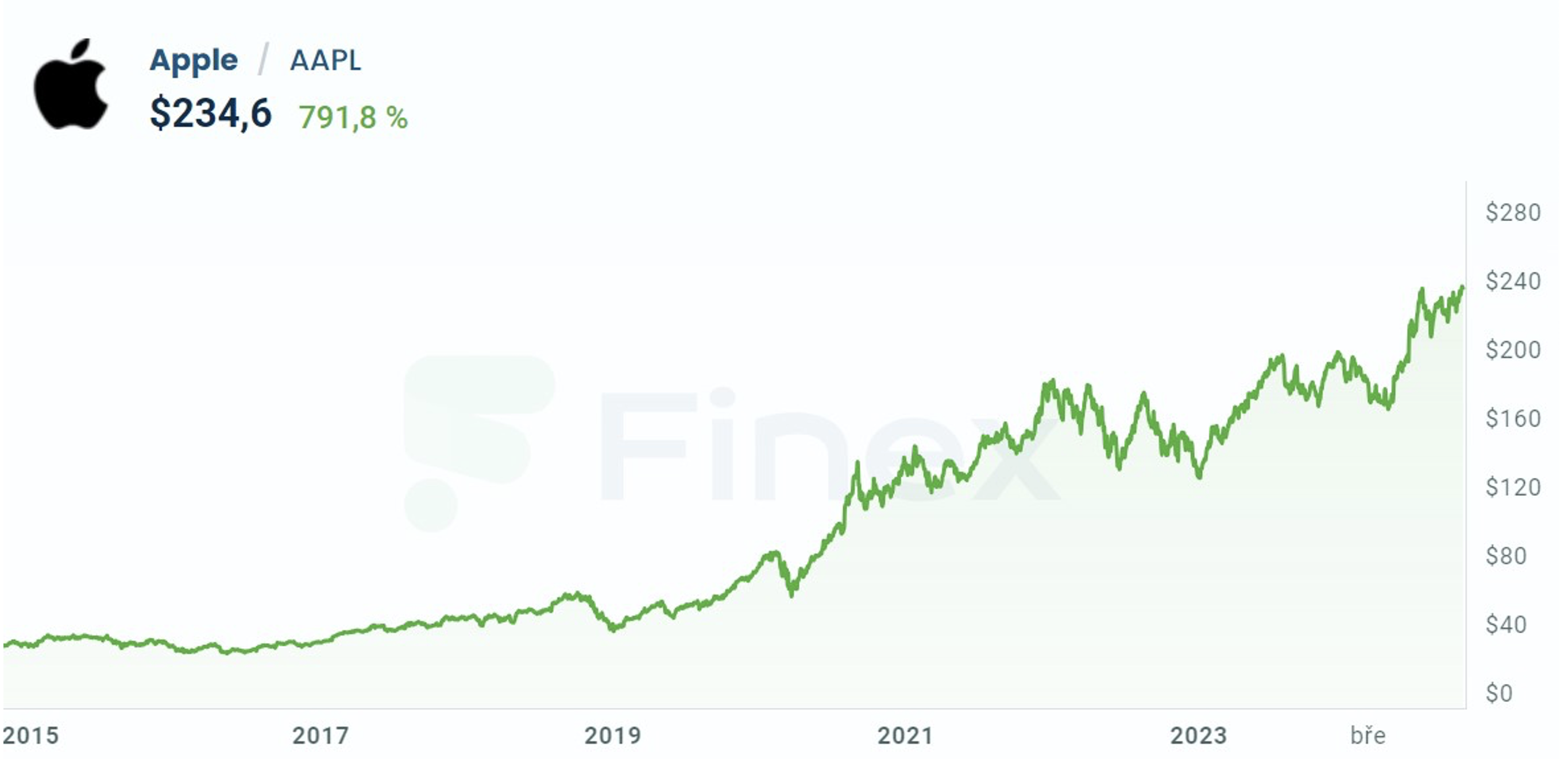 Vzhledem k historickému růstu ceny akcií a očekávanému potenciálu růstu mohou být akcie Apple pro investory zaměřené na růst atraktivní. Navíc mohou těžit z mírného dividendového výnosu společnosti ve výši 0,43 % a z jejího konzistentního zvyšování. Apple zvyšuje dividendu nepřetržitě posledních 12 let. Zdroj informací: https://finex.cz/akcie/apple/