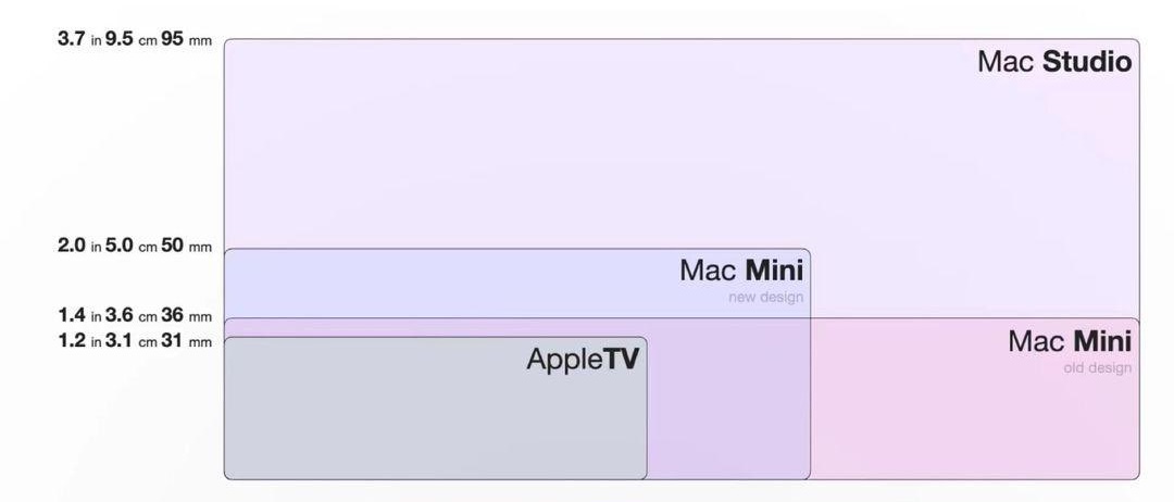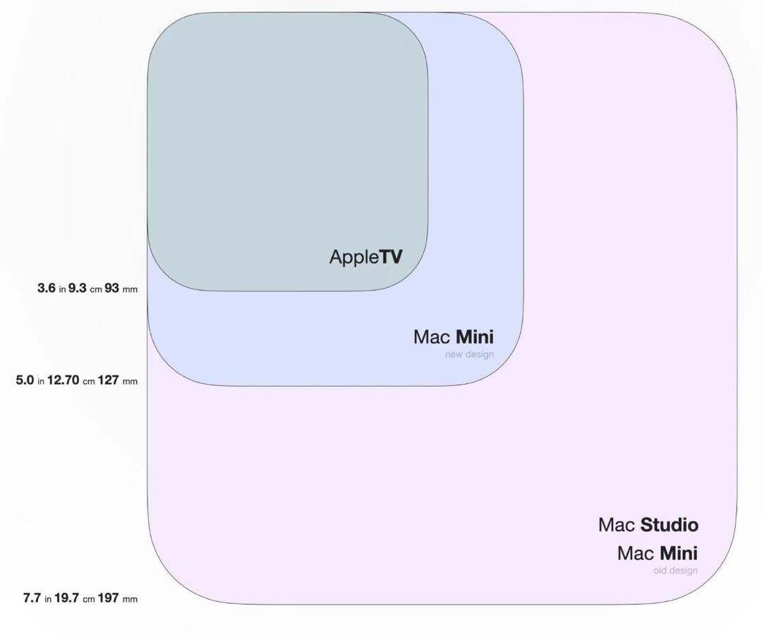 Když Apple před pár dny světu přestavil novou verzi Macu mini, setkal se zejména díky jeho miniaturním rozměrům s velkými ohlasy. Tělo o rozměrech 12,7 x 12,7 x 5 cm totiž zkrátka musí vzhledem k tomu, jak velký výkon se do něj Applu podařil „napasovat“, zaujmout. Máte však vůbec představu o tom, o kolik je vlastně nový Mac mini menší oproti původní verzi tohoto stroje, případně jak si stojí proti Macu Studio nebo Apple TV? Pokud ne, následující grafické srovnání vám v tom udělá jasno.