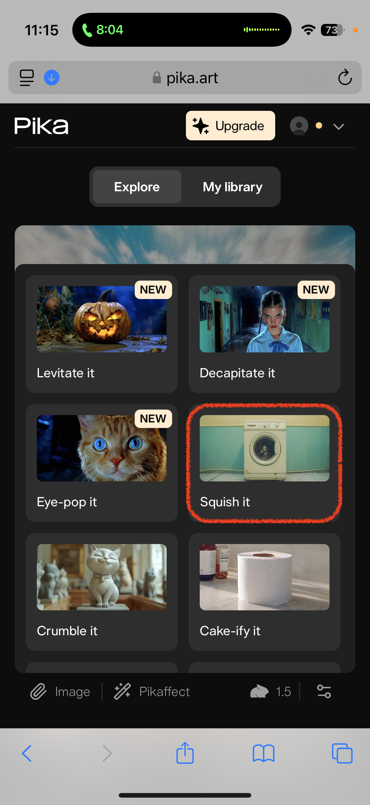 - V levém dolním rohu zvolte Image a vyberte si z knihovny fotek, na kterou chcete efekt mačkání (či jakýkoliv jiný) použít. Doporučujeme použít takovou fotku, ve které je objekt pro zmačkání zhruba na středu, aby jej AI dokázala snadno rozpoznat