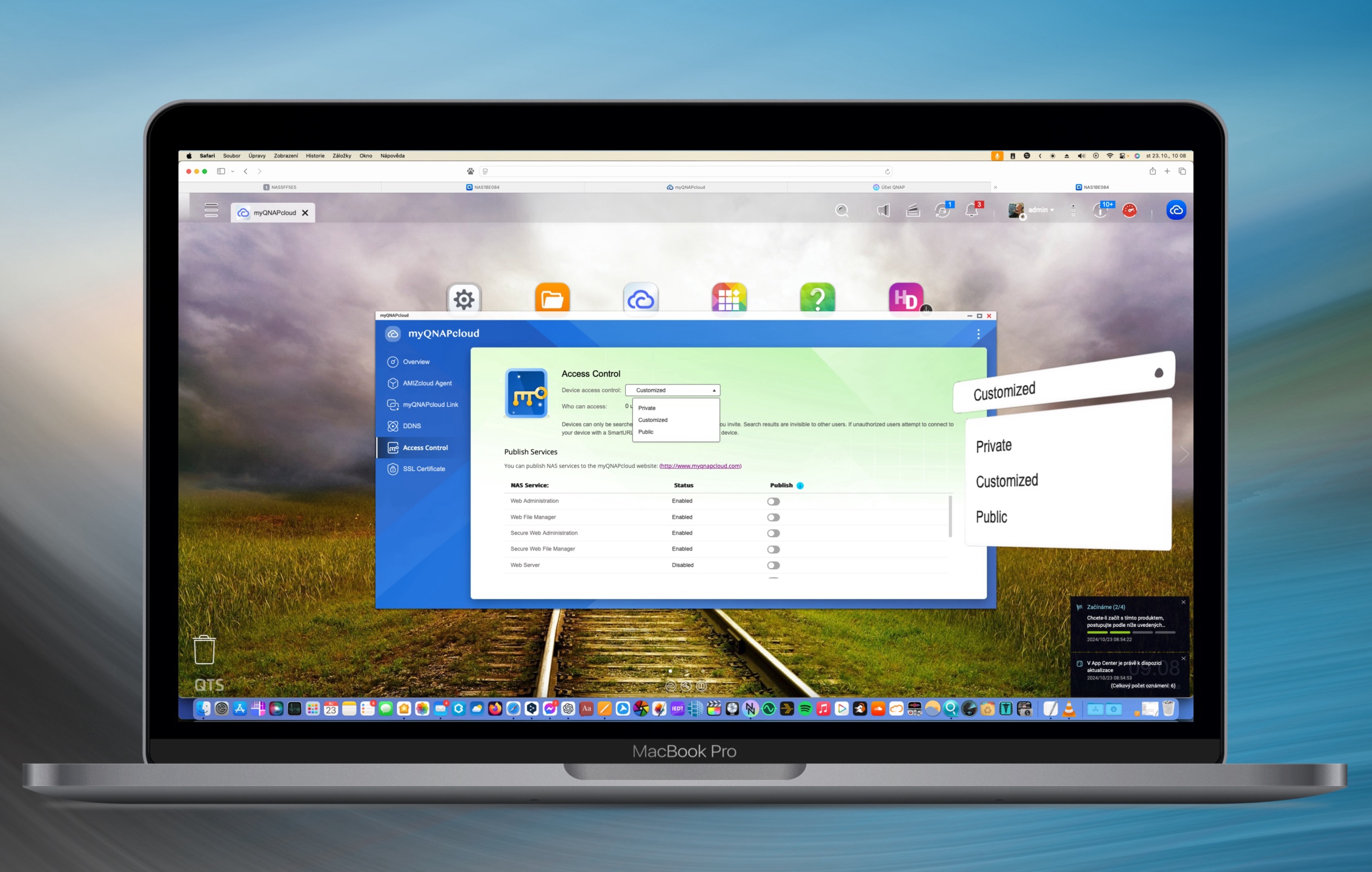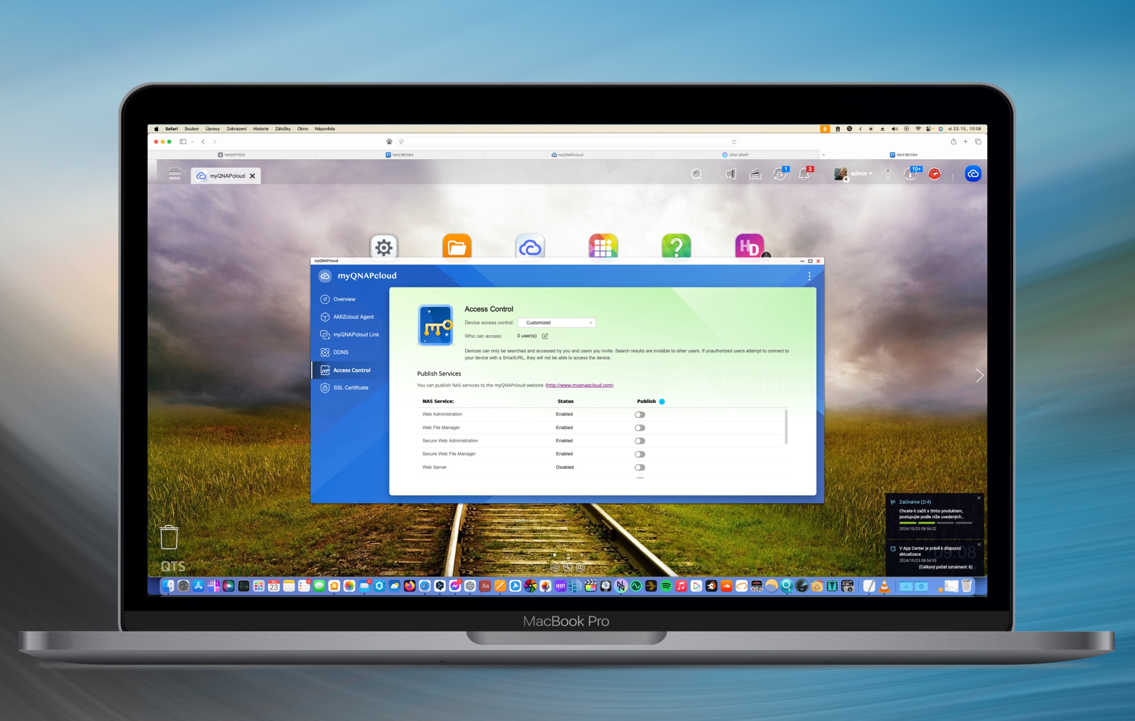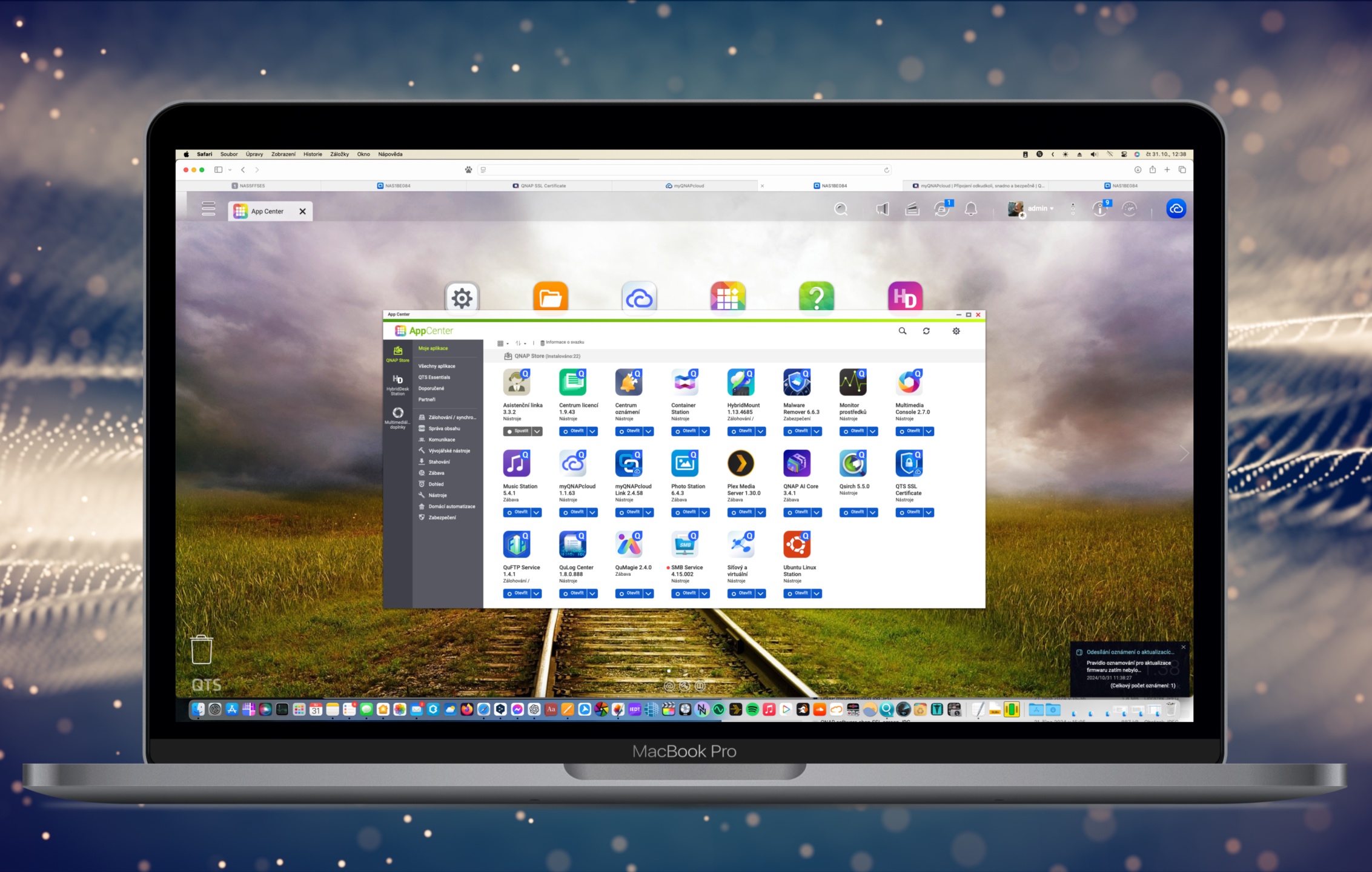 Veškeré úkony spojené se správou NAS provedete na portálu myQNAPcloud.com snadno přes tlačítko vpravo nahoře označené Přejít na plochu. Vše od instalace nových aplikací, updatu těch stávajících přes vytvoření nového uživatele, zálohování i obnovení až po aktualizace firmwaru je vám k dispozici se všemi nástroji a ve stejné podobě, jako byste pracovali lokálně.