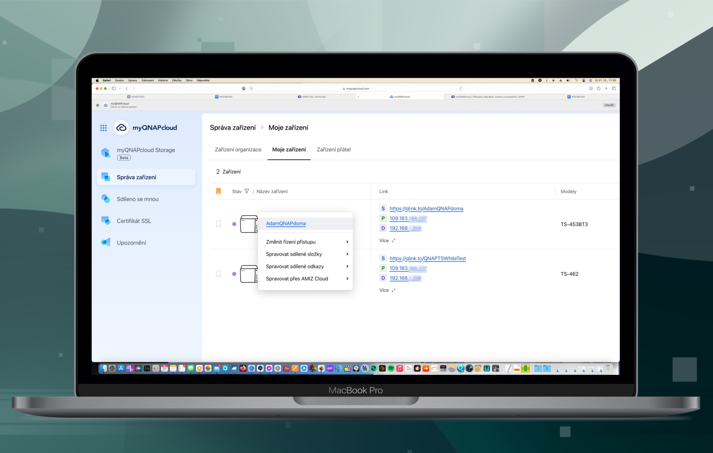 A máte hotovo. Zbývá obrátit pozornost k myQNAPcloud.com, kde již v oddílu Správa zařízení uvidíte svůj NAS pod názvem, který jste mu přidělili. Kromě zmíněného Smart URL vám zde bude po ruce kupříkladu veřejná IP adresa, ale také označení modelu nebo aktuální verze firmwaru, přičemž zde nechybí ani rychlá navigace ke změně řízení přístupu, správě sdílených složek, odkazů nebo k AMIZcloud.
