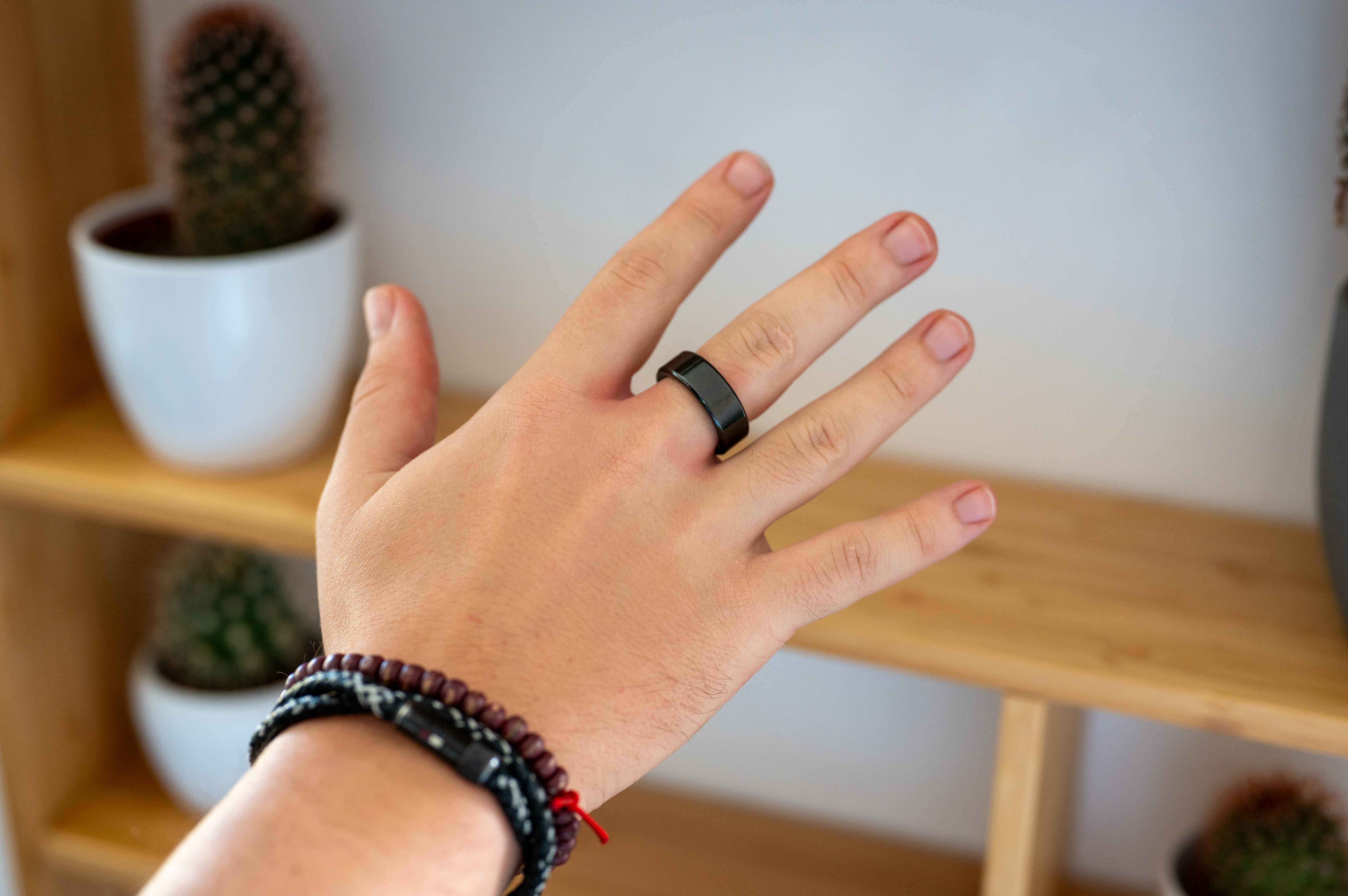 Vnější plášť prstenu je vyroben z ušlechtilé nerezové oceli, vnitřek pak patří zřejmě plastovému obalu se spoustou nejrůznějších senzorů či nabíjecím portem. Pokud se pak ptáte na to, v jakých barvách lze prsten pořídit, jedná se o černou, stříbrnou a zlatou variantu, přičemž všechny varianty si můžete prohlédnout v naší fotogalerii. Já testoval konkrétně černou variantu ve velikosti 10, která má vnitřní průměr 19,8 mm a obvod 62,1 mm. K dispozici jsou nicméně ještě další tři velikosti – dvě menší a jedna větší.