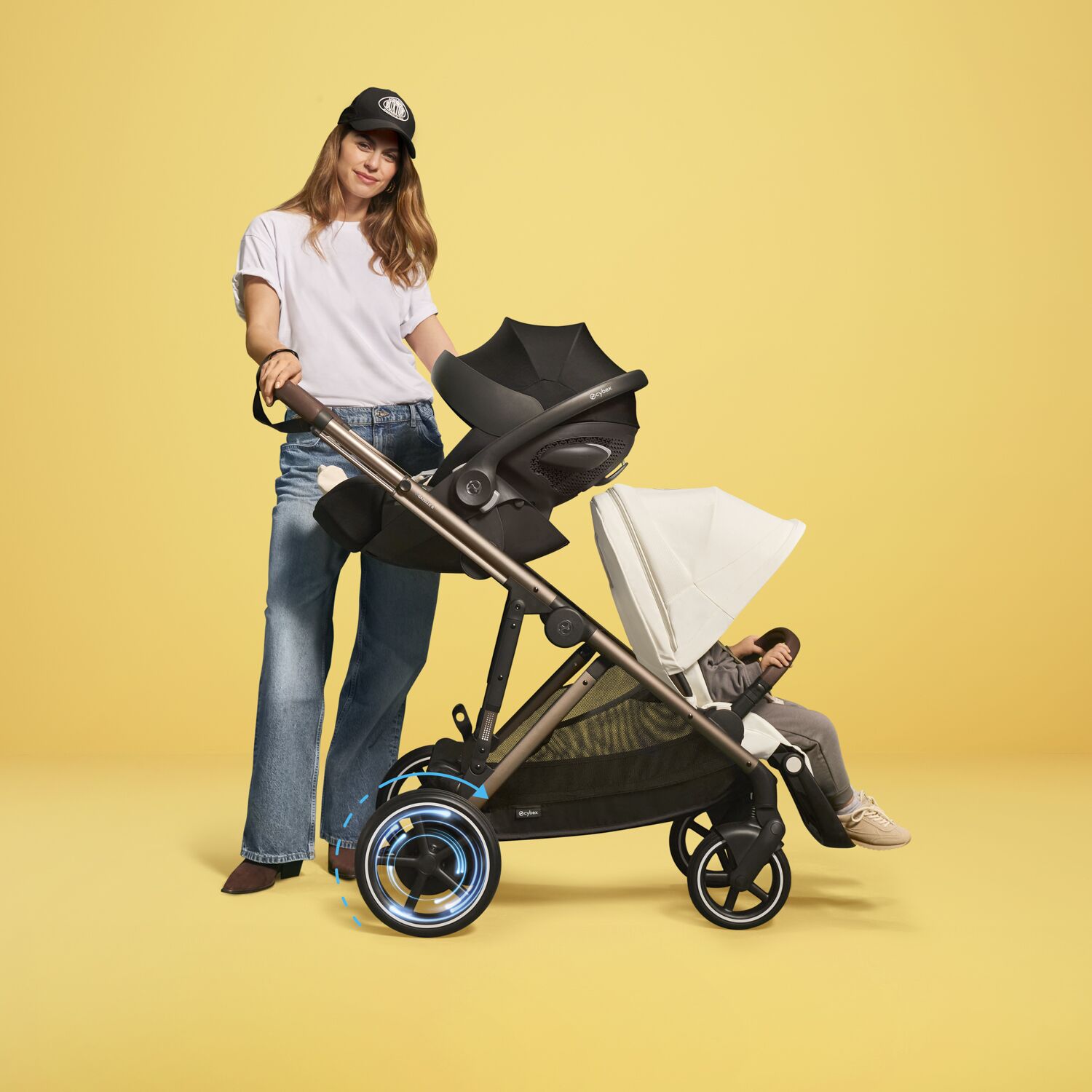 e-Gazelle S je už druhým počinem firmy Cybex v oblasti elektrokočárků. Oproti prvnímu luxusnímu modelu e-Priam, který byl na trh uveden před pěti lety, je však e-Gazelle S navržen pro běžné rodiny a díky tomu je i cenově dostupnější. Navíc nabízí celou řadu různých konfigurací a na jednom podvozku tak můžete klidně vozit jedináčka s nákupem, nebo třeba dvojčata s celou výbavou. Jen si to představte! Celodenní výlety bez únavy, pohodlné vycházky do přírody, usnadnění práce s kočárkem prarodičům… Není divu, že popularita elektrokočárků raketově stoupá a že se nám pomalu rýsuje nový rodičovský standard.
