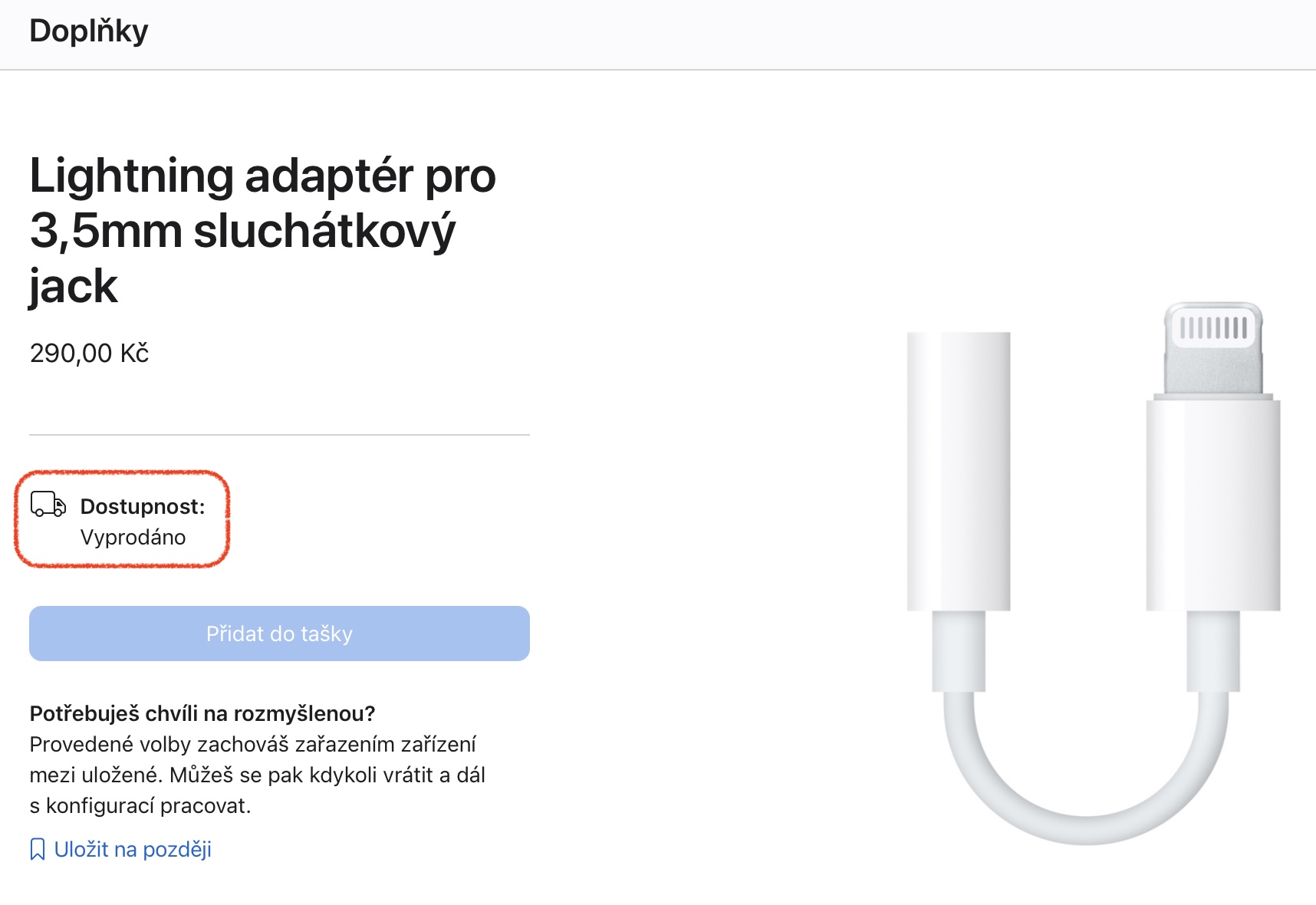 Že se produktová nabídka Applu neustále mění je vzhledem k tomu, že Apple pravidelně představuje nové generace svých produktů, kterými nahrazuje generace předešlé, naprosto pochopitelné. Faktem však je, že konec prodejů některých doplňků z jeho dílny přesto dokáže svým způsobem překvapit. Přesně to platí ostatně i pro adaptér Lightning/3,5mm audio jack, který prodával Apple přes svůj Online Store za 290 Kč. Nyní si však začali jablíčkáři všímat, že jeho eshop hlásí „vyprodáno“,stejně jako sklady v kamenných Apple Storech.