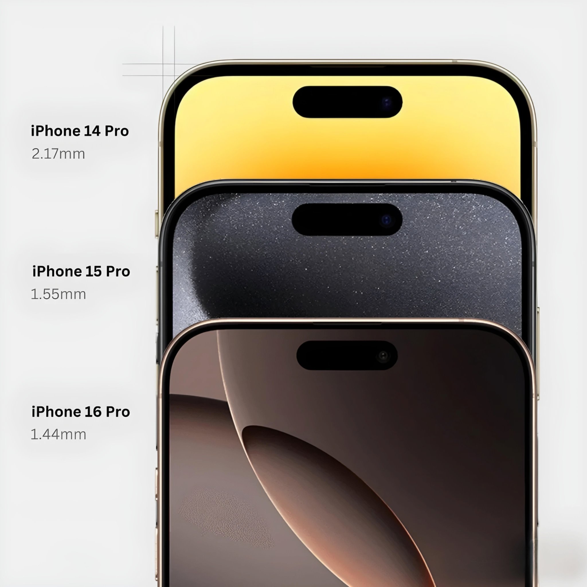 Jak můžete sami vidět, zatímco mezigenerační rozdíly až tak velké nejsou, budeme-li na telefony nahlížet ob jeden rok, tam už jsou rozdíly neoddiskutovatelné. Vždyť mezi rámečky iPhonů 14 Pro a 16 Pro je propastných 0,73 mm, což při rozměrech iPhonů a rámečků jako takových už je opravdu dost. Je ale pravda, že rezervu zde má Apple stále poměrně velkou a nám tak nezbývá než doufat, že se mu podaří co nevidět rámečky eliminovat ještě víc a my tak budeme mít na přední straně skutečně plnohodnotnou zobrazovací plochu bez jakéhokoliv lemování.