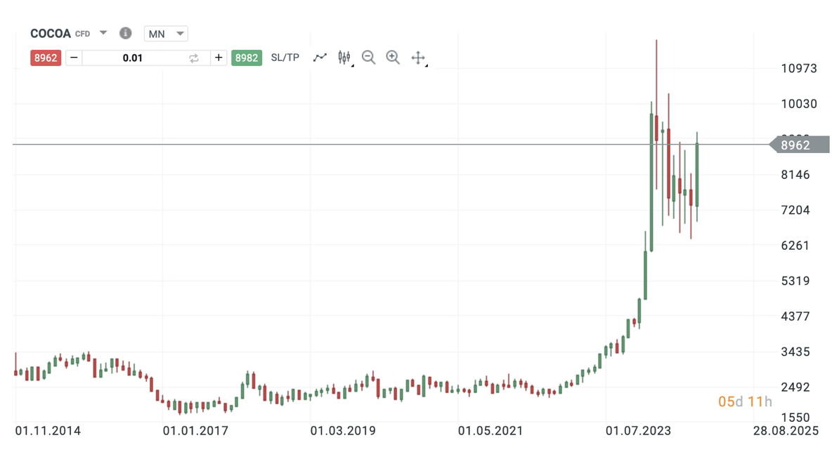 Ceny kakaa se od začátku měsíce zvedly o více než 20 %, což z něj činí jednu z nejvýraznějších komodit roku. Důvodů pro tento nárůst je hned několik: