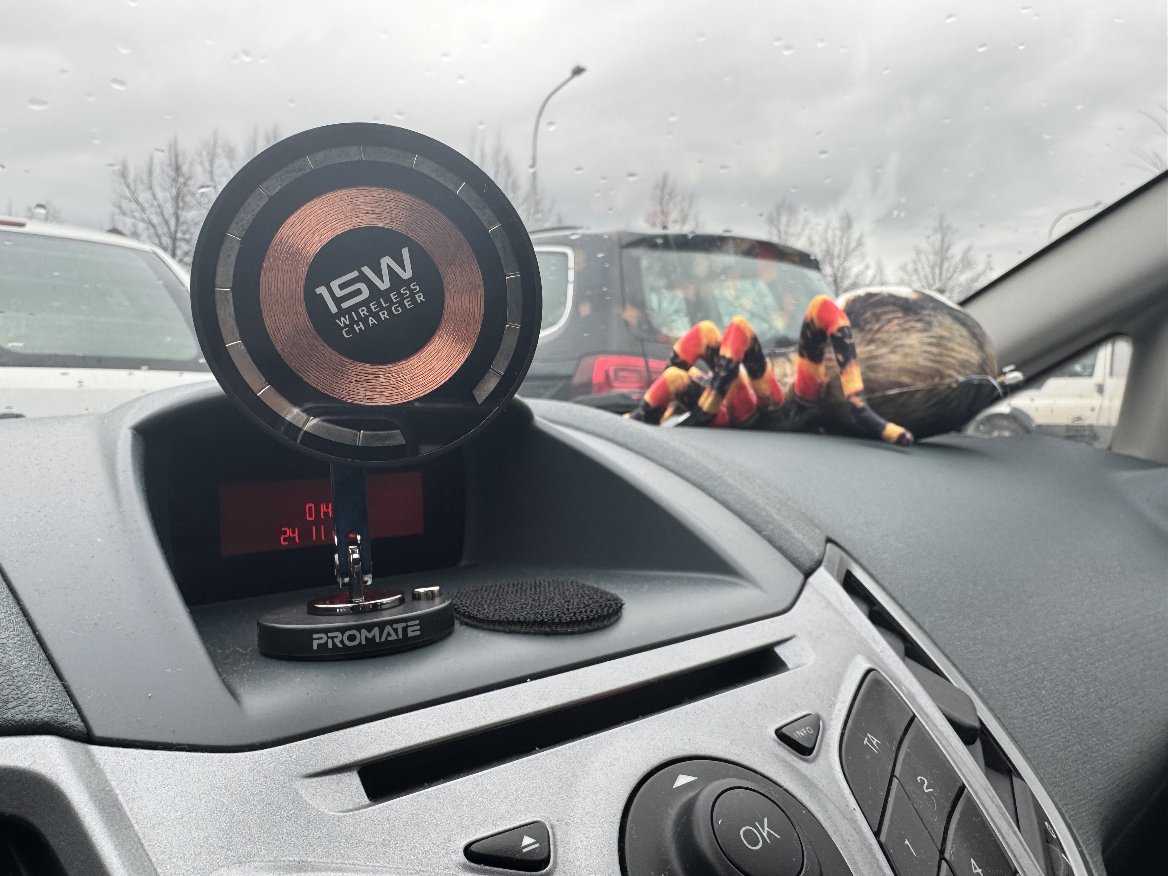 Hlavním prvkem je silný magnet, který pevně drží telefon na místě. Během testování nabíječka spolehlivě udržela iPhone 15 Pro i při prudkém brzdění a ostrých zatáčkách. Rameno držáku je vyrobeno z kovu a celý a připevňuje na palubní desku pomocí lepící podstavy.Další výhodou je 360° otáčení, které umožňuje snadné nastavení telefonu do ideálního úhlu. Ať už chcete používat navigaci, přijímat hovory, nebo sledovat příchozí oznámení, Magnus-Qi se přizpůsobí vašim potřebám.