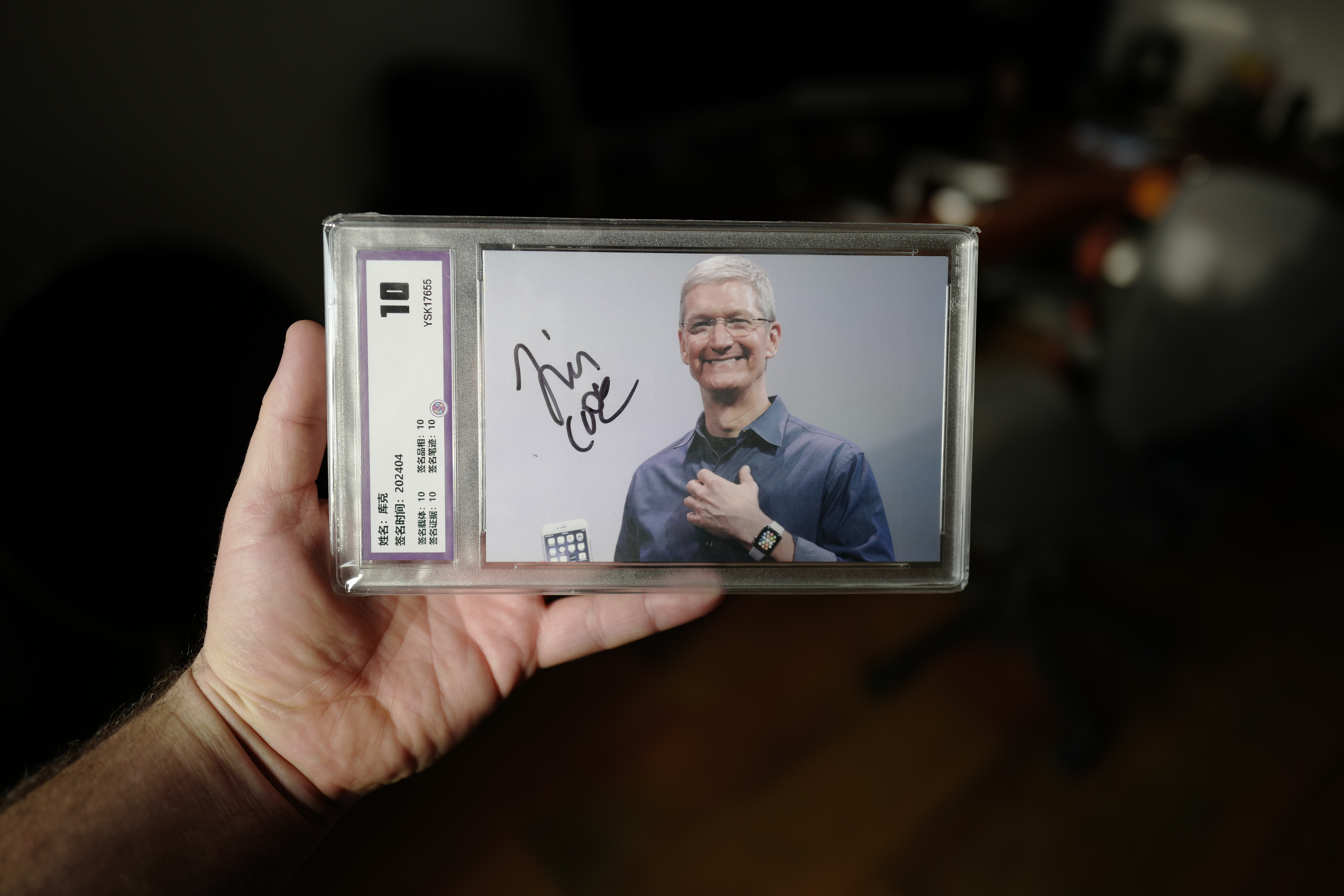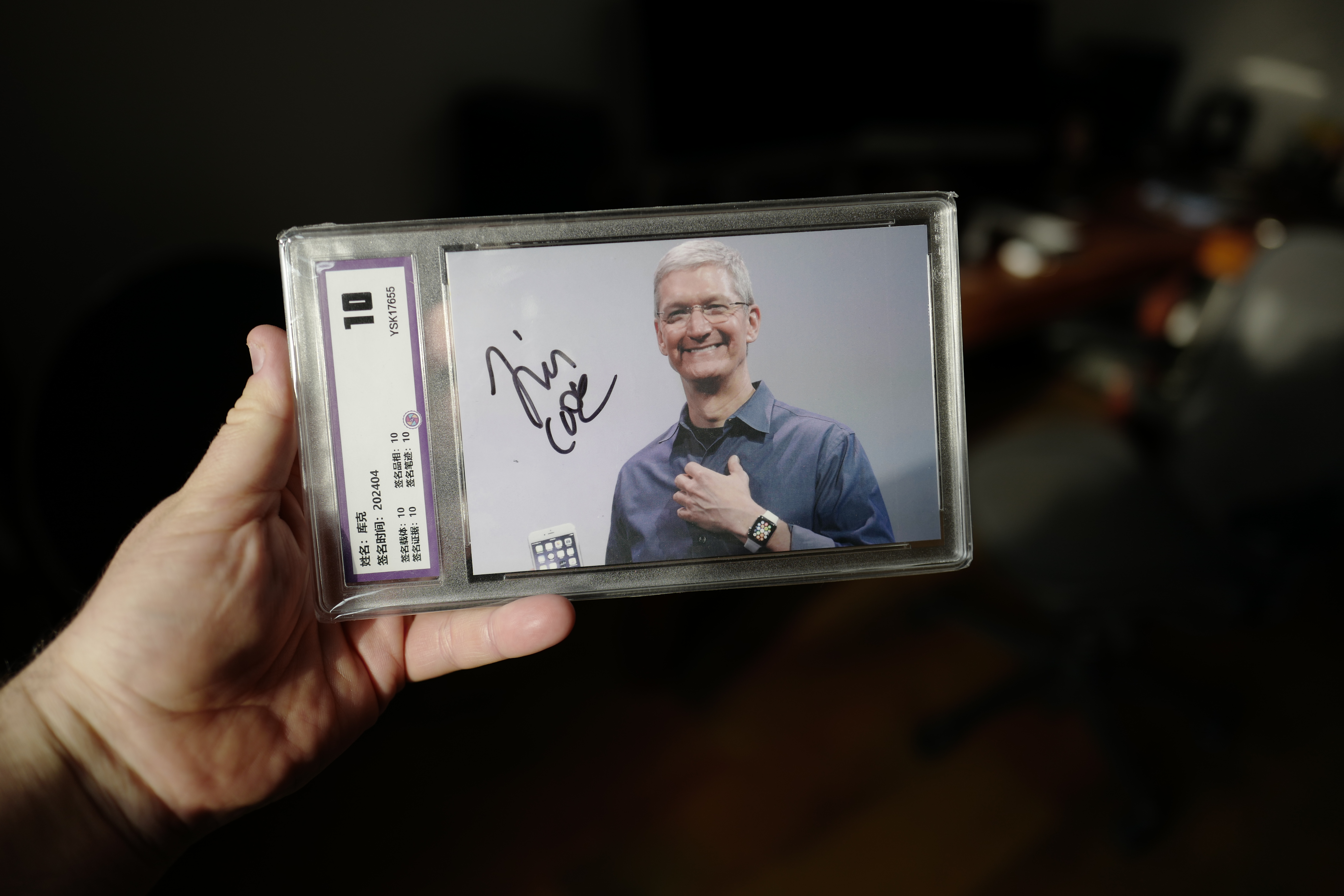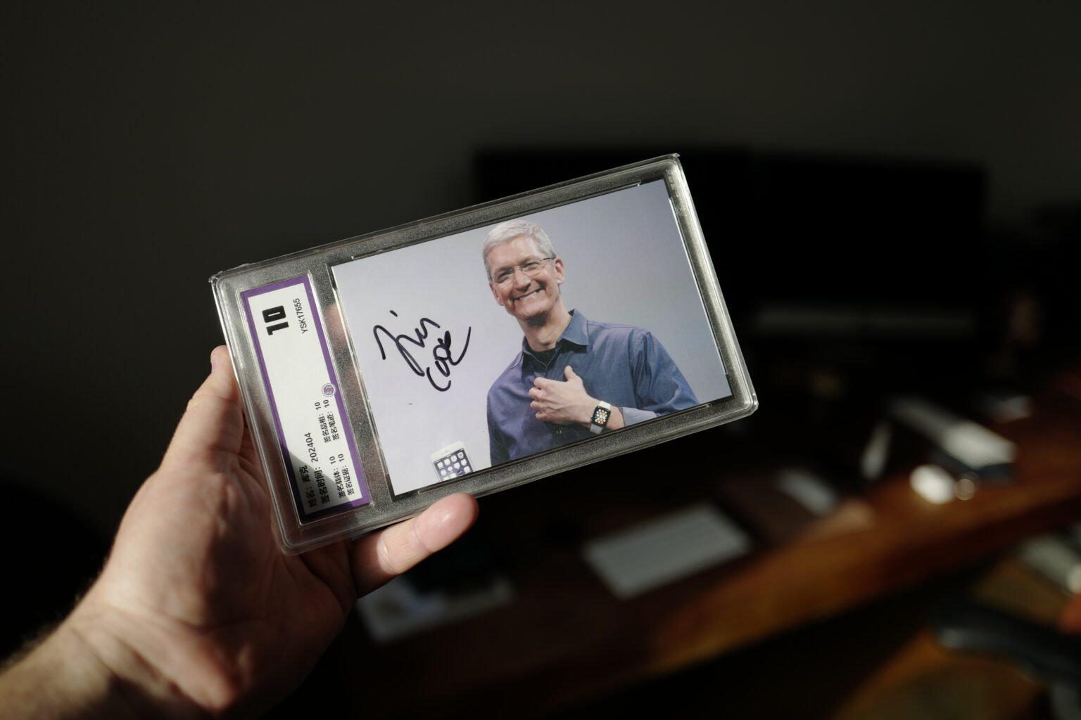 Podařilo se mi najít podpis, který jako jediný má i fotografii, na které je vidět jak jej Tim Cook dává a je k němu COA z Japonska. Kromě mentality Japonců, kteří by si nedovolili vydat falešnou COA, je pro mě mnohem důležitější právě fotografie, na které je vidět, že Tim skutečně podepisuje svoji fotografii. Jak tato fotografie, tak i COA a taktéž samozřejmě samotná fotka podepsaná Timem Cookem jsou zatavené v plastové krabičce a vše vypadá zkrátka perfektně. Vzhledem k tomu, že mám také podpis Steva Wozniaka, Ronalda Wayne a časem doufám, že získám i Steva Jobse, tak to dopadne tak, že ze všech podpisů udělám nějakou pěknou koláž tvořící obraz v mé pracovně. Fotografie podpisu jsou pořízené přes ochranný celofánový obal a doufám, že to omluvíte, ale rozbalovat jej mohu až na Vánoce.