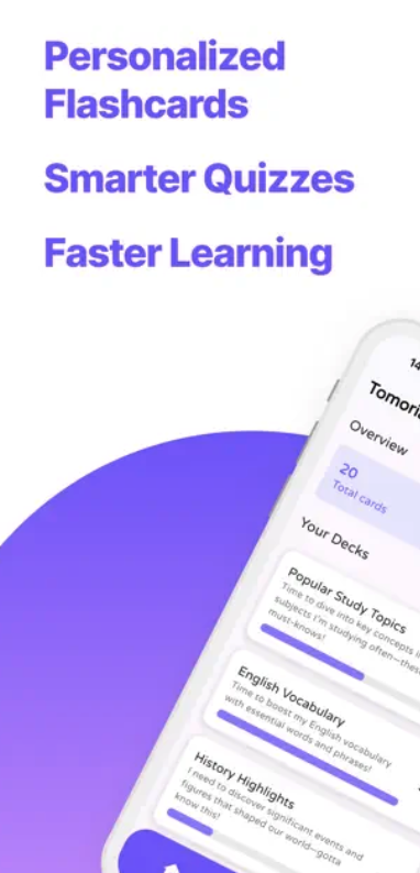 TOMORIA je jednoduchá aplikace pro kartičky, která vám pomůže studovat chytřeji a efektivněji. Ať už se připravujete na zkoušky, učíte se nový jazyk nebo si děláte domácí úkoly, TOMORIA učiní učení efektivnějším. S AI funkcemi, opakováním v pravidelných intervalech a synchronizací v cloudu je TOMORIA ideálním nástrojem pro zvládnutí jakéhokoliv tématu.