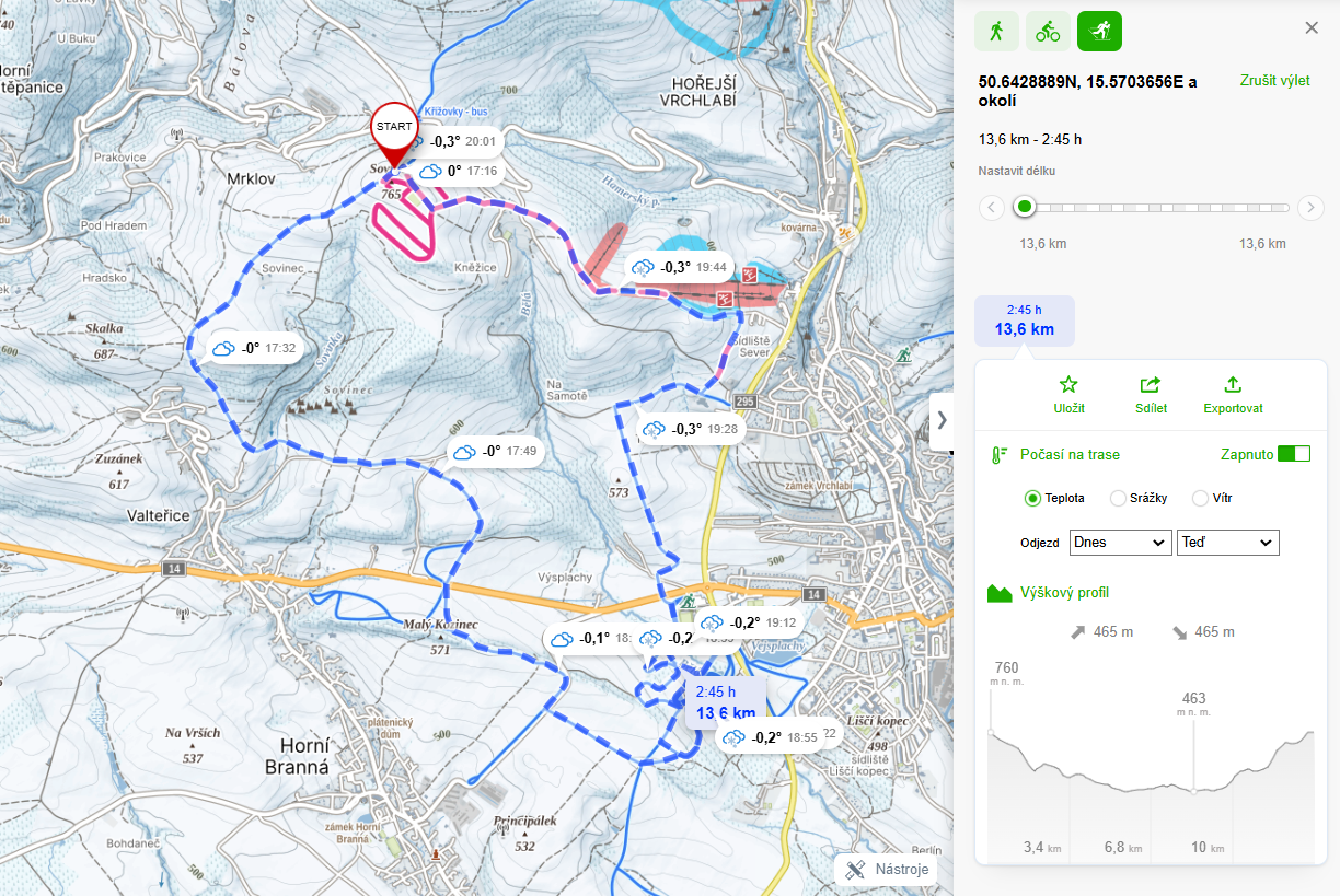 3. Plánování výletů na běžkách – Naplánujte si ideální okruh podle délky, obtížnosti nebo preferované oblasti.