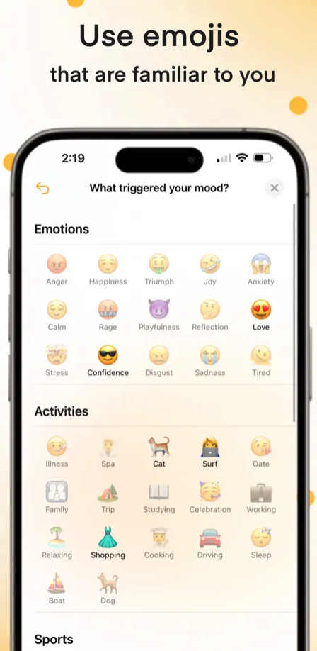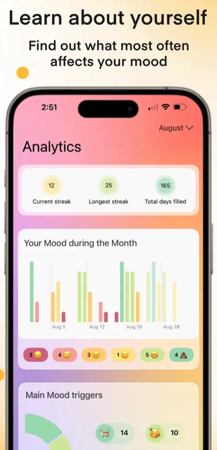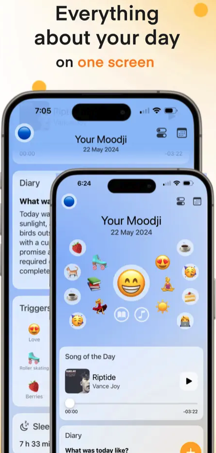 Moodji je váš osobní a soukromý společník pro sledování nálad. Je navržen s důrazem na jednoduchost, zábavu a soukromí a pomáhá vám pochopit a zlepšit vaše emocionální pohodu bezpečným a poutavým způsobem. Začněte svou cestu sebepoznání a emocionálního wellness s Moodji, osobním trackerem nálad a deníkovou aplikací navrženou pro podporu mindfulness, vděčnosti a hlubokého pochopení vašeho emocionálního stavu. Snadno zaznamenávejte své každodenní emoce pomocí známých emoji. Ať už se cítíte dobře, špatně nebo cokoliv mezi tím, Moodji vám usnadní sledování nálady. V aplikaci si můžete vést bezpečný záznam svých emocionálních stavů. Moodji vám pomáhá identifikovat vzorce a spouštěče ve své náladě, což vám umožňuje efektivněji zvládat své emoce.