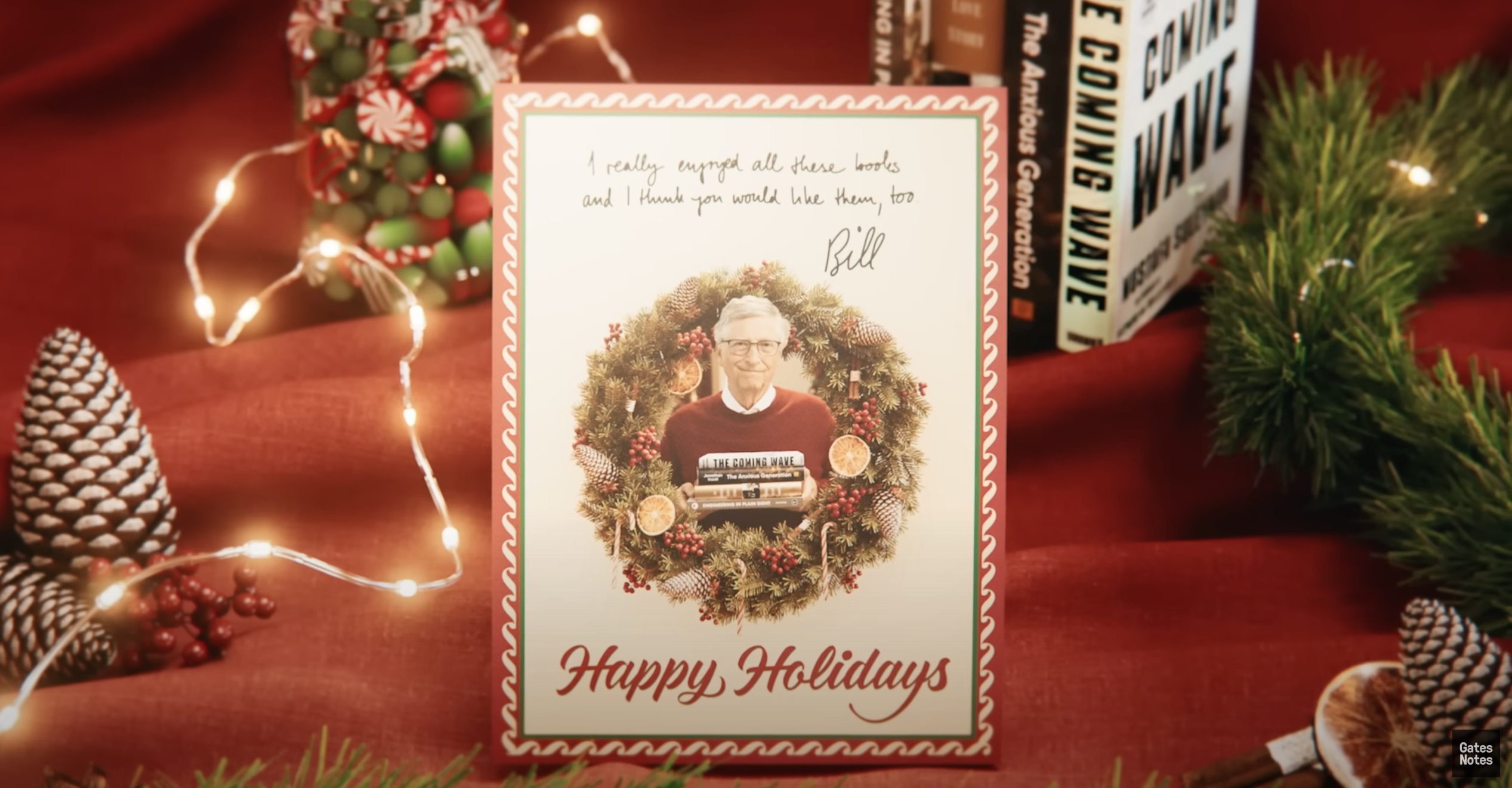 Jako již tradičně, ani letos Bill Gates nevynechal svůj seznam knih, které stojí za to si letos o Vánocích přečíst. Pokud hledáte něco nového, zajímavého ke čtení a necháte si doporučit knihy od Billa Gatese, pak je právě pro vás určen seznam čtyř knih, které jej letos zaujaly nejvíce. Bill Gates je vášnivý čtenář a v posledních letech se snaží číst knihy, které mapují témata aktuálního dění ve světě nebo toho, co se stane v blízké budoucnosti. Nehledejte tedy beletrii, ale spíše knihy, které vám pomohou nahlédnout do témat jako umělá inteligence, budoucnost technologických pokroků a mnoho dalšího. Mimochodem Bill Gates vám v následujícím videu popřeje také krásné Vánoce!