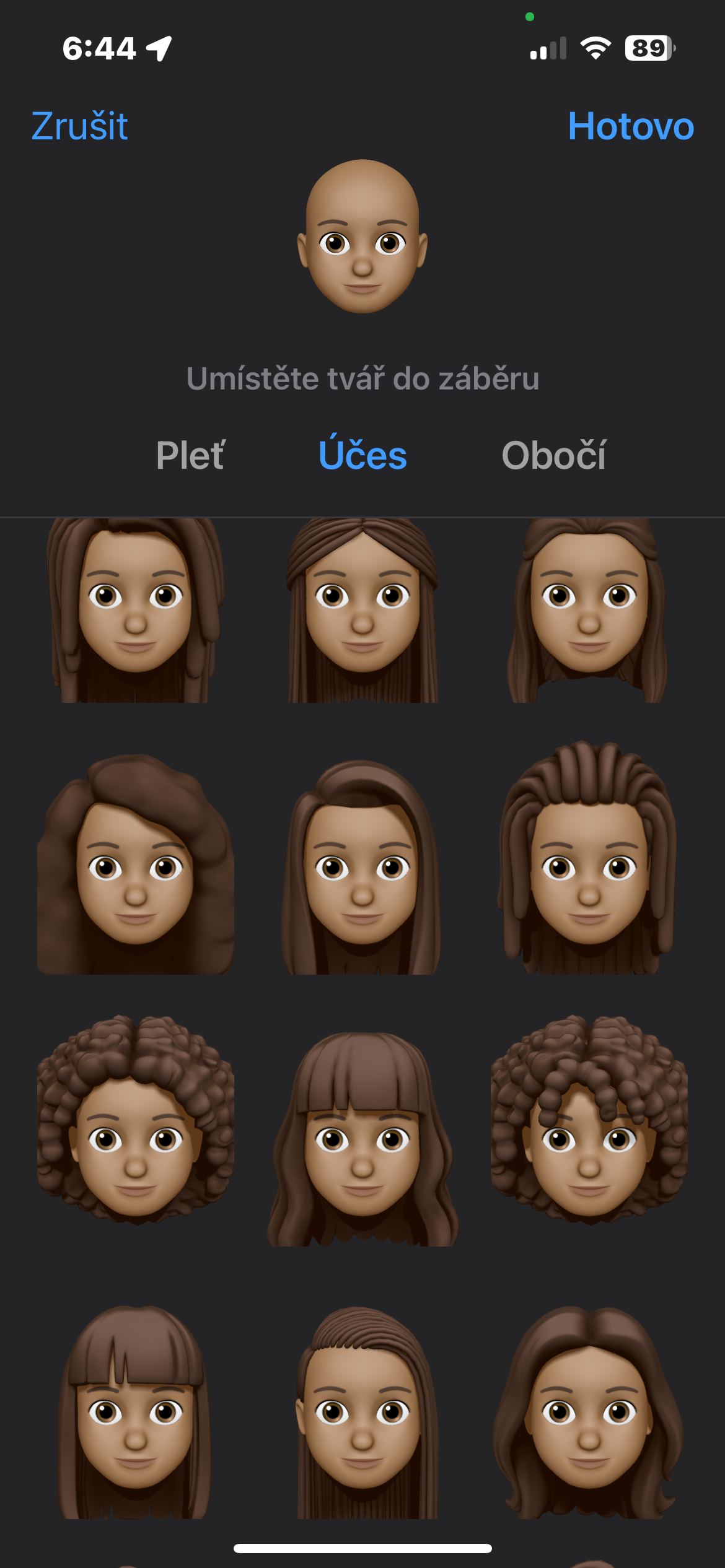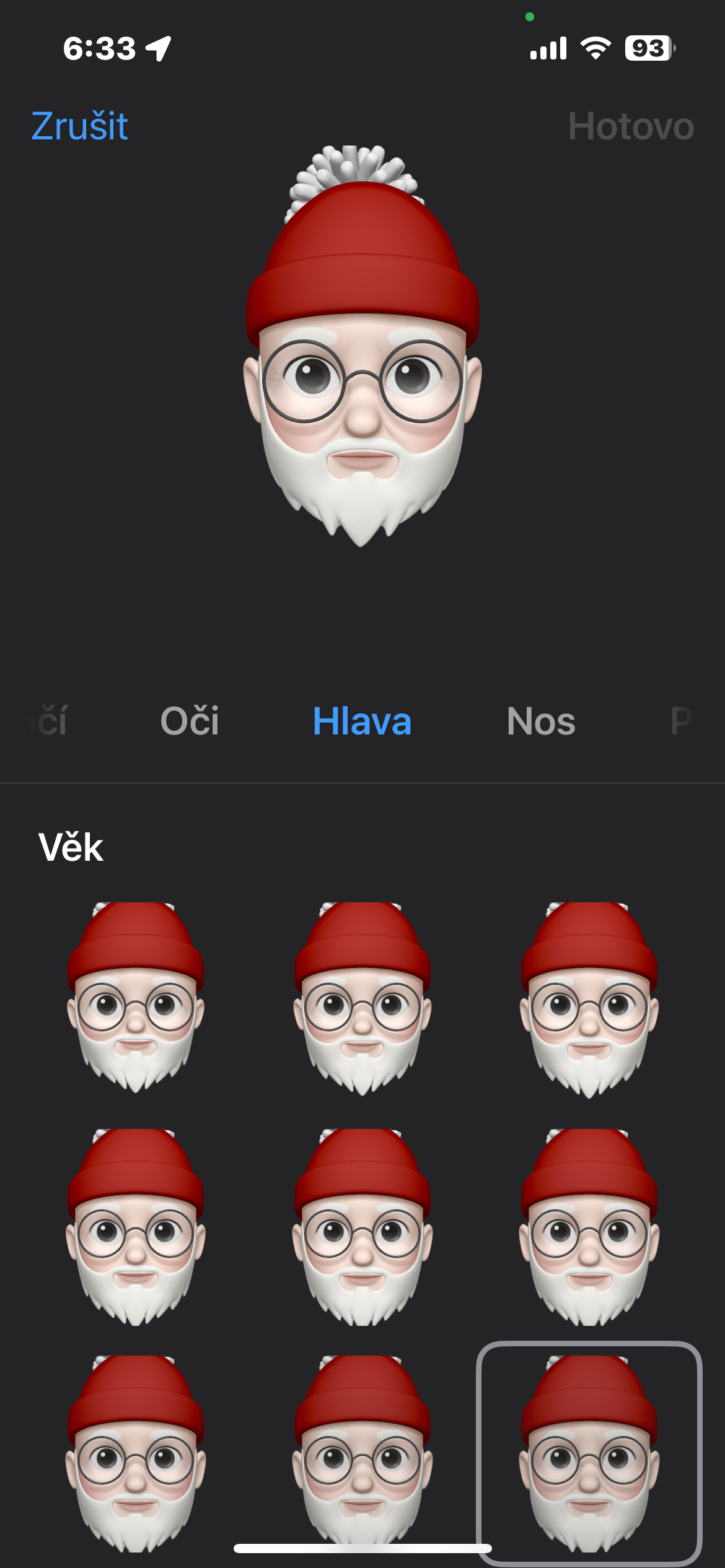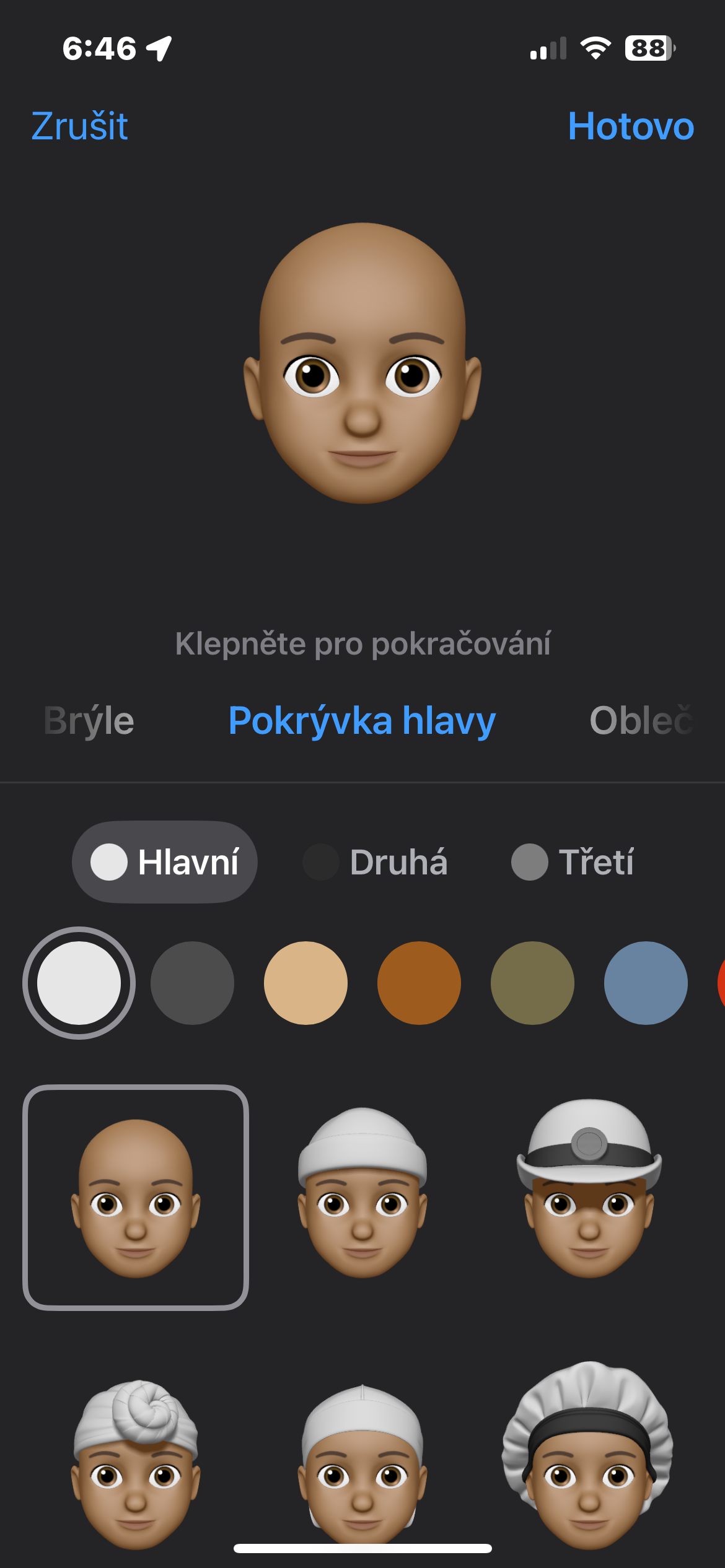 Pod náhledem Memoji najdete jednotlivé kategorie, takže pokud chcete jen upravit vlasy, oči nebo třeba pokrývku hlavy, stačí jen jednoduše zamířit do dané kategorie. Jakmile budete s úpravami hotovi, klepněte na Hotovo.