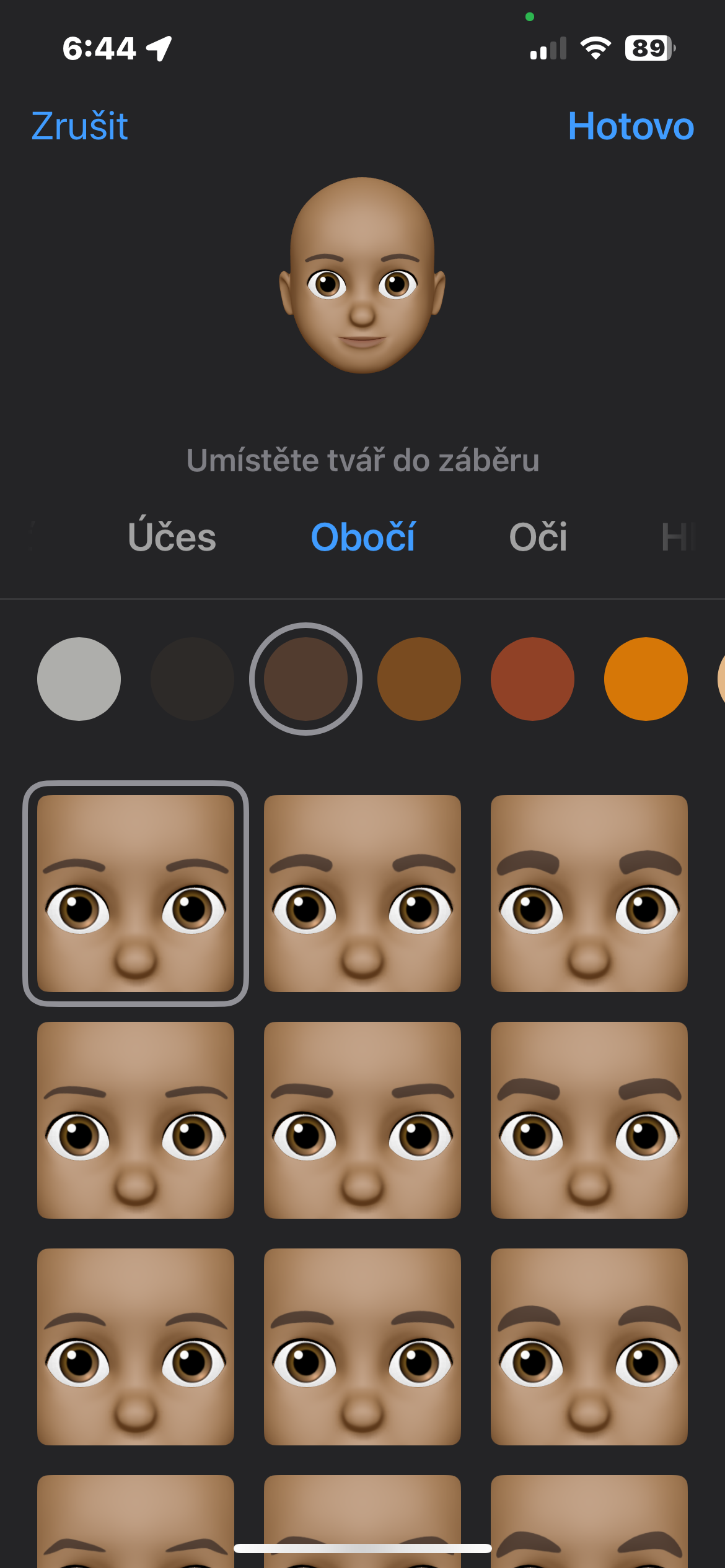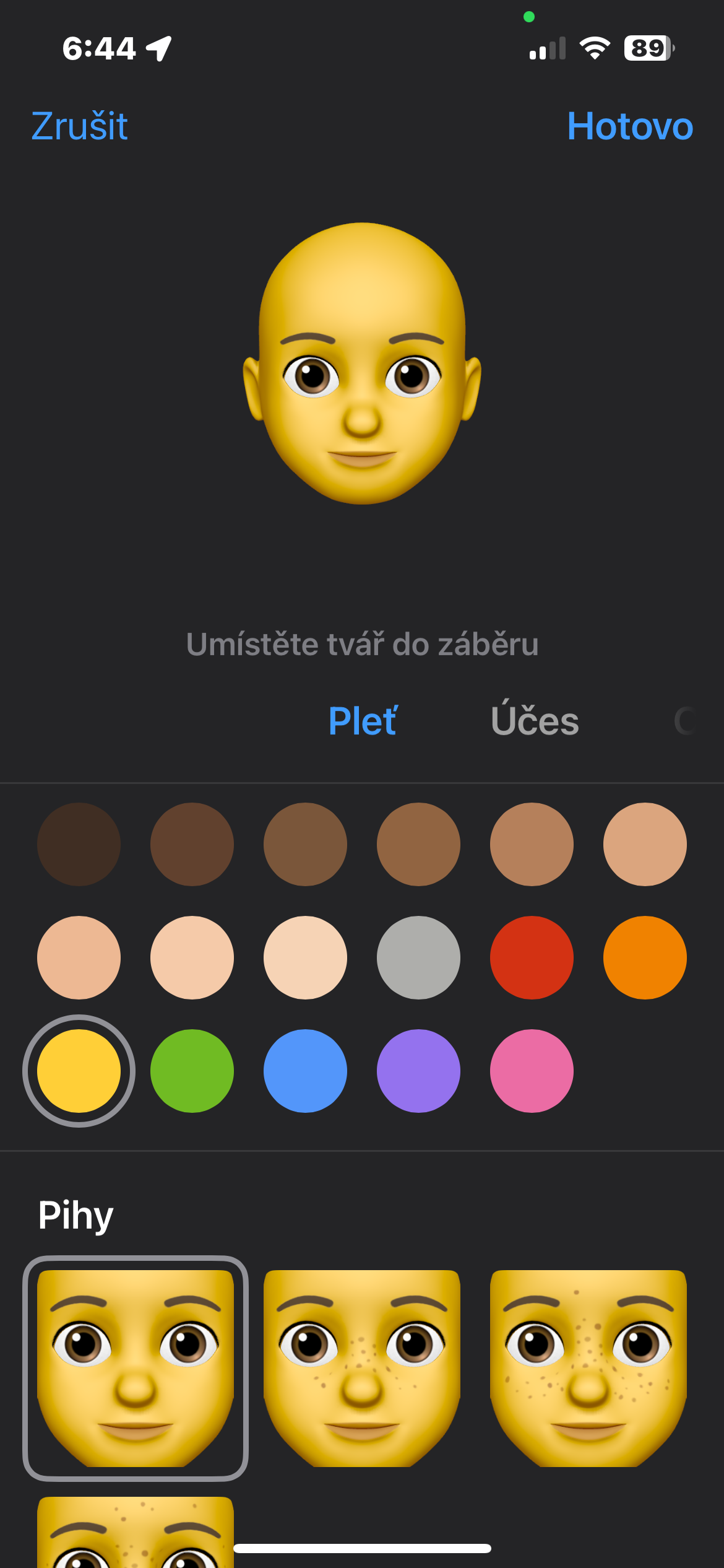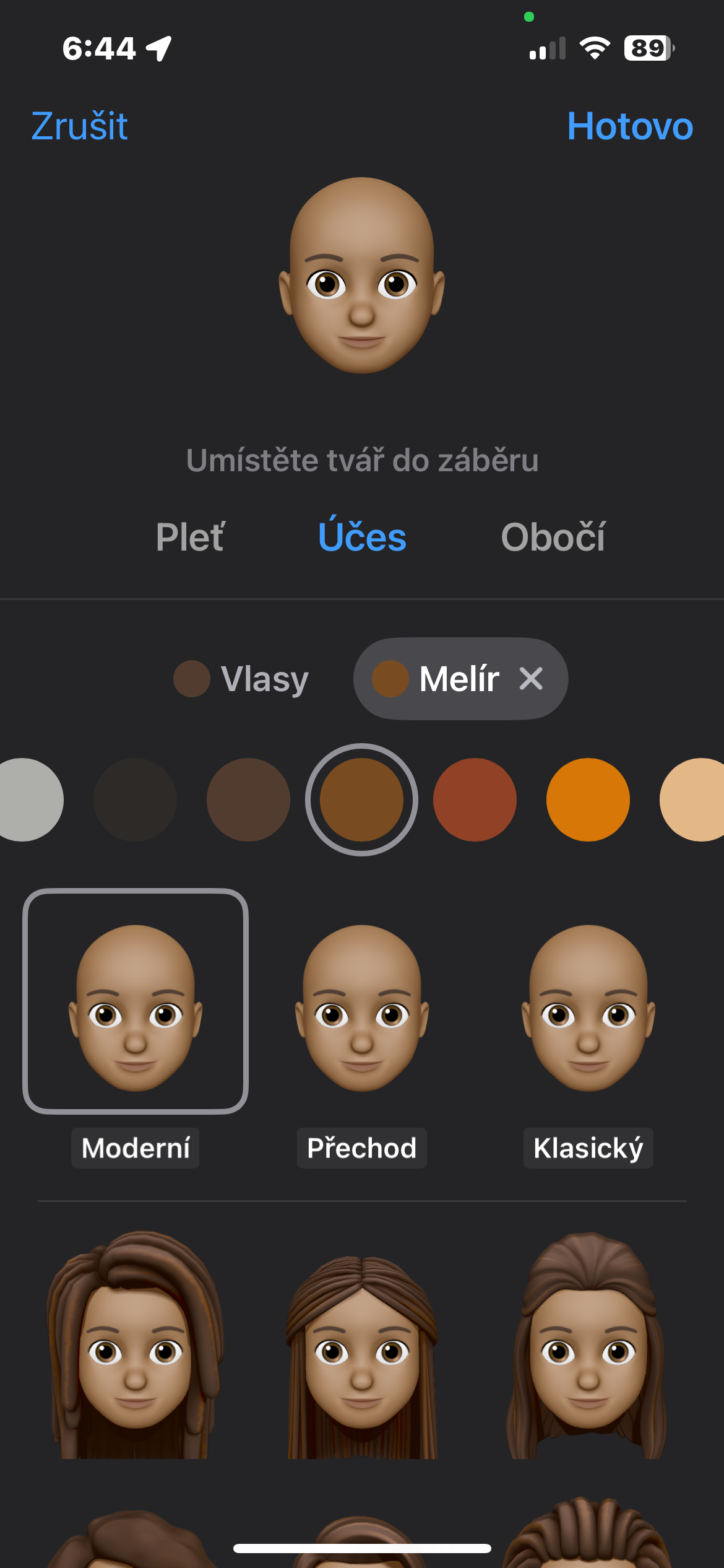 Pod náhledem Memoji najdete jednotlivé kategorie, takže pokud chcete jen upravit vlasy, oči nebo třeba pokrývku hlavy, stačí jen jednoduše zamířit do dané kategorie. Jakmile budete s úpravami hotovi, klepněte na Hotovo.