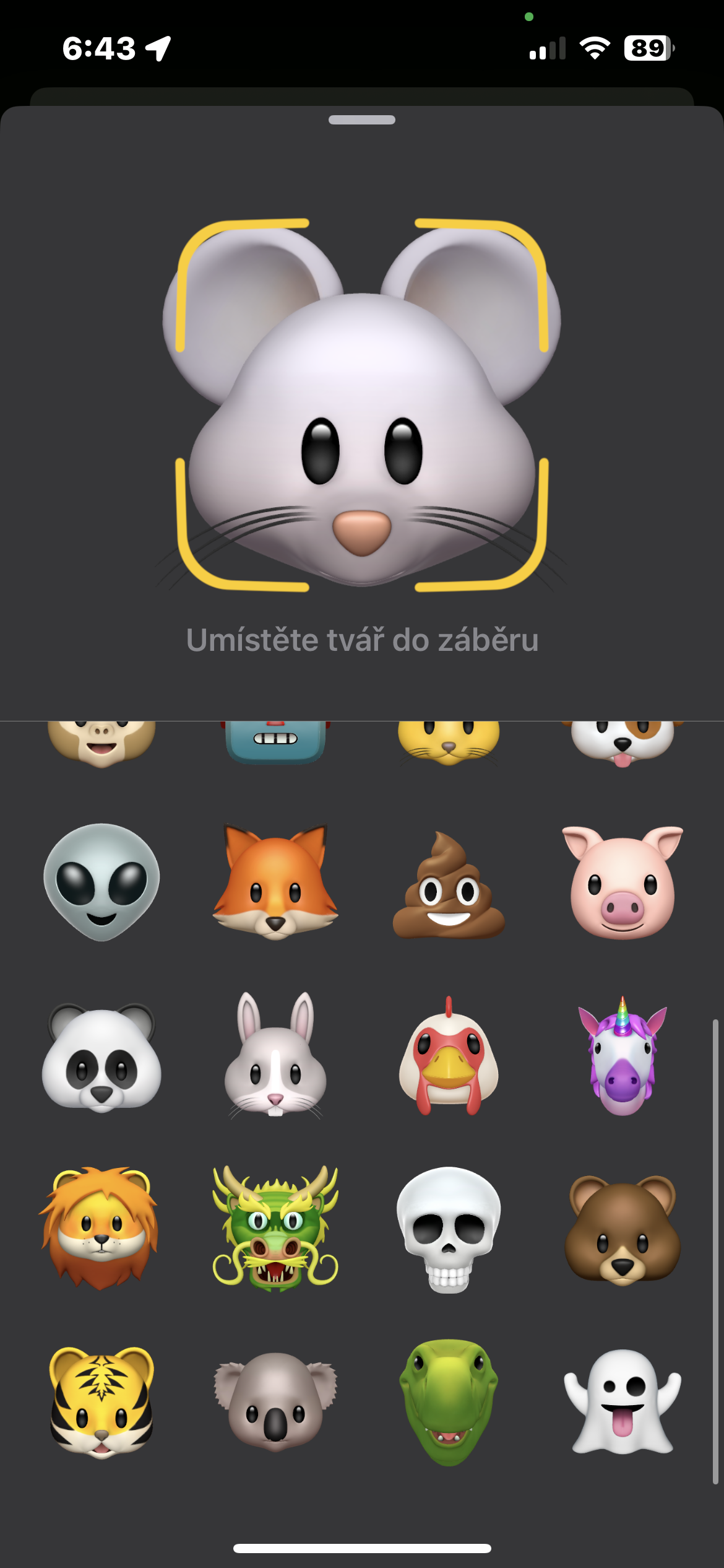 - Pokud vám stačí některé z nabízených Memoji (například kočka, liška nebo jednorožec), jednoduše jej klepnutím vyberte.