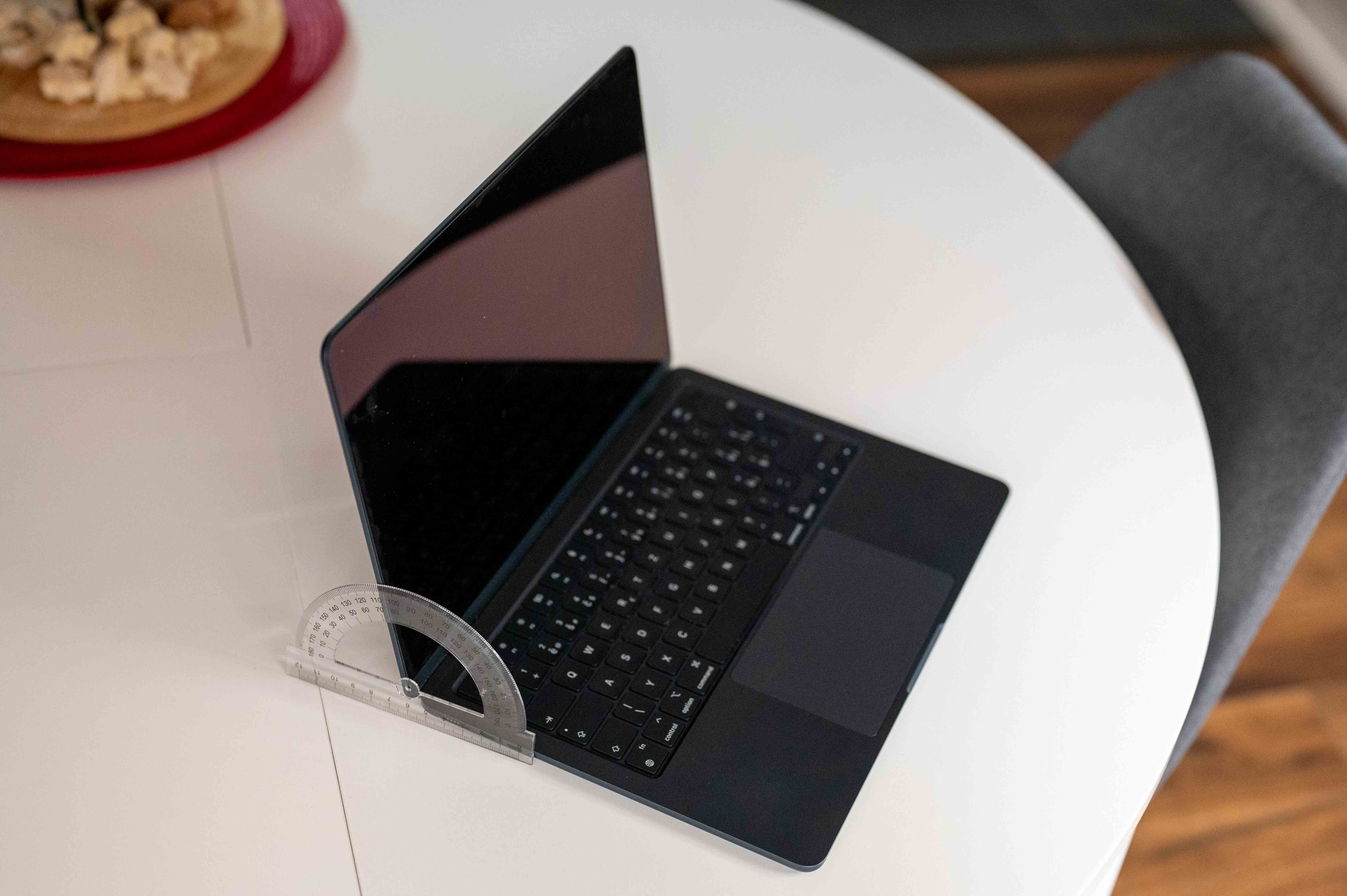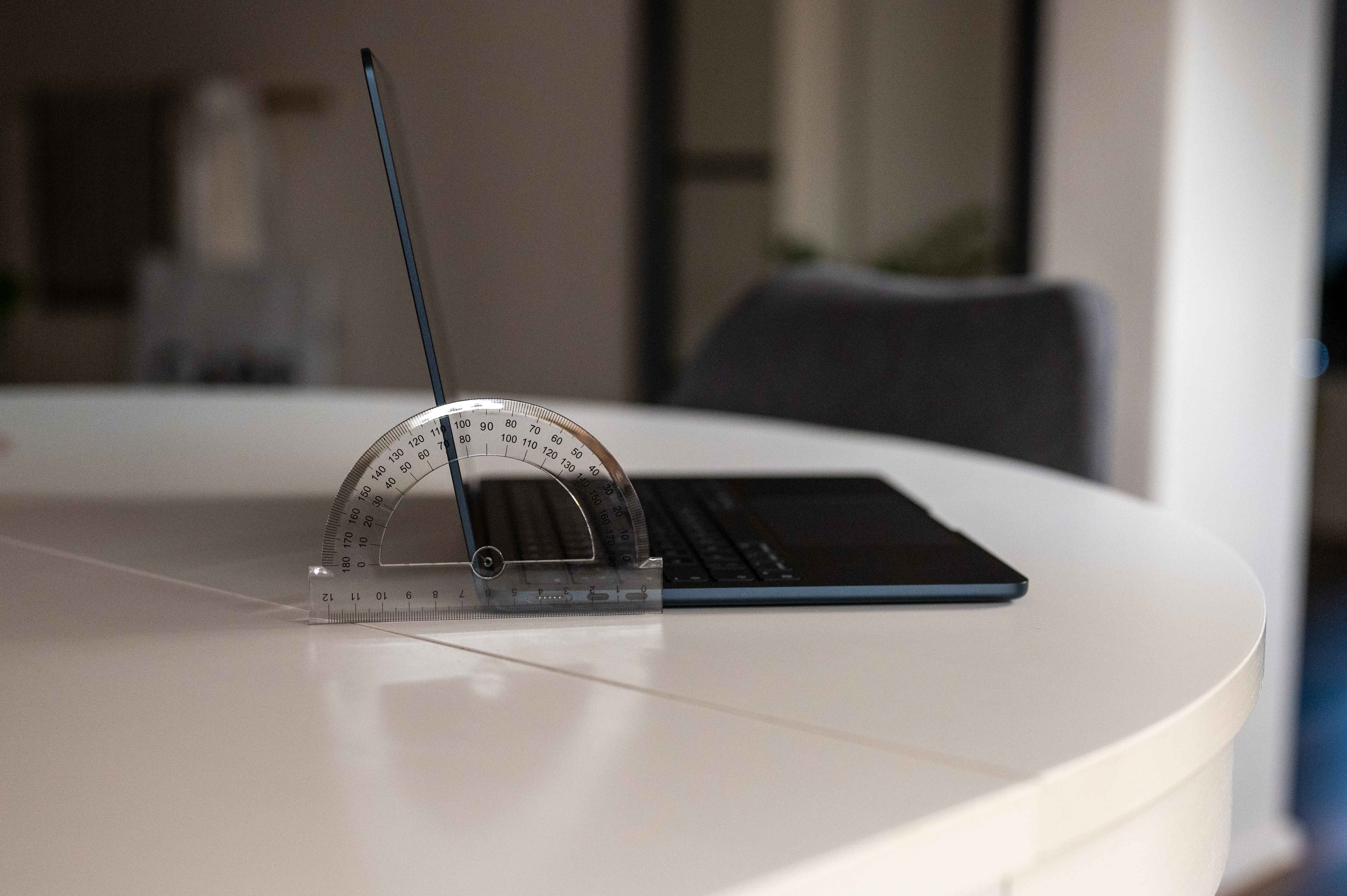 Faktem je, že pokud si prohlížíte iMac nebo MacBook, který leží na stole a vy u stolu jakožto zákazník logicky stojíte, neexistuje ideální poloha displeje, protože nelze displej tak hodně vyklopit. Zcela vyklopený displej by navíc z profilu nevypadal dobře, vidím to tedy spíš tak, že zvolili úhel, který esteticky vypadá nejlépe, ale s marketingem (dotykem) to nemá nic společného.