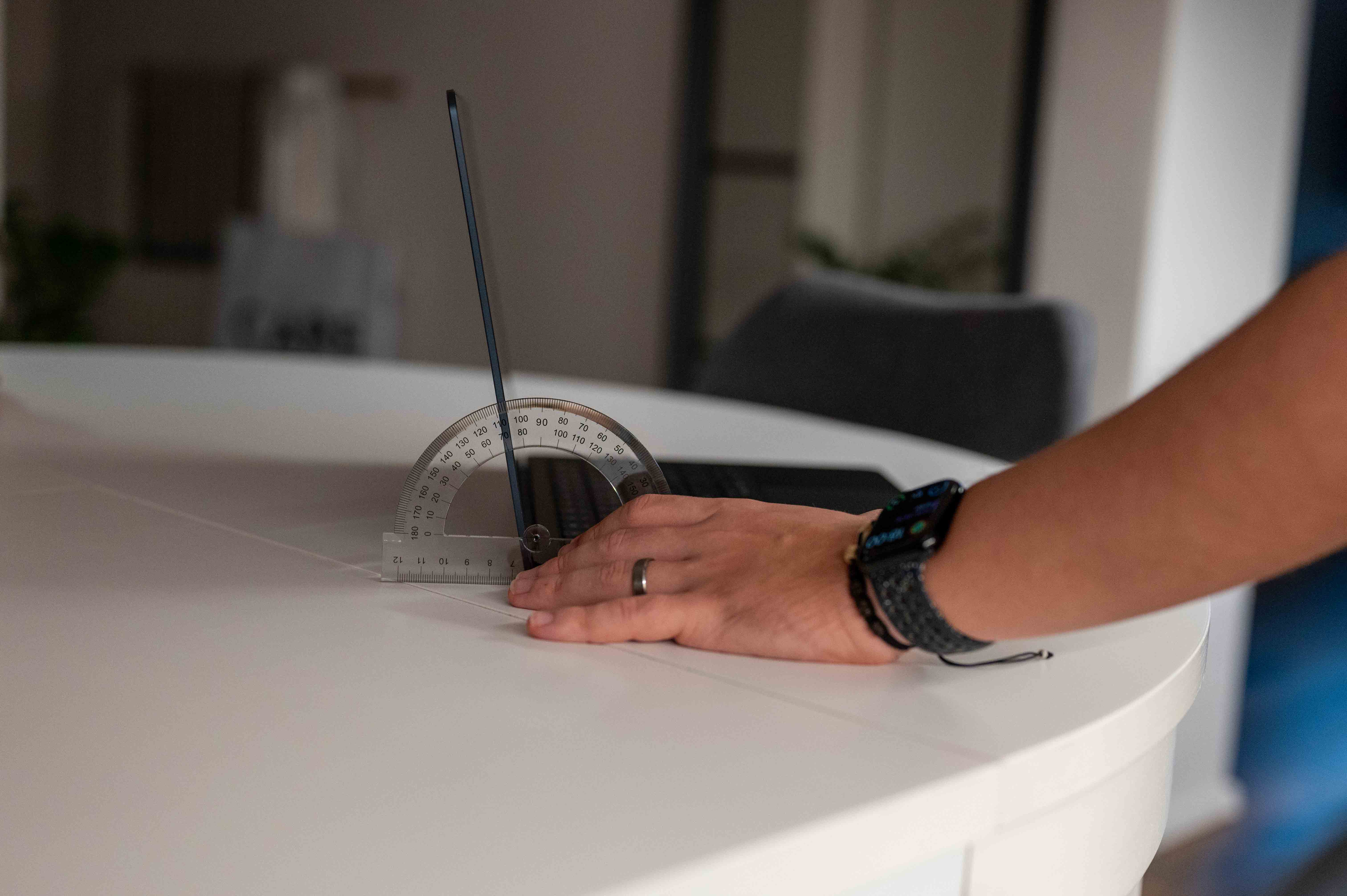 Nastavují to pomocí úhloměru, resp. pomůcky s vyznačeným úhlem.