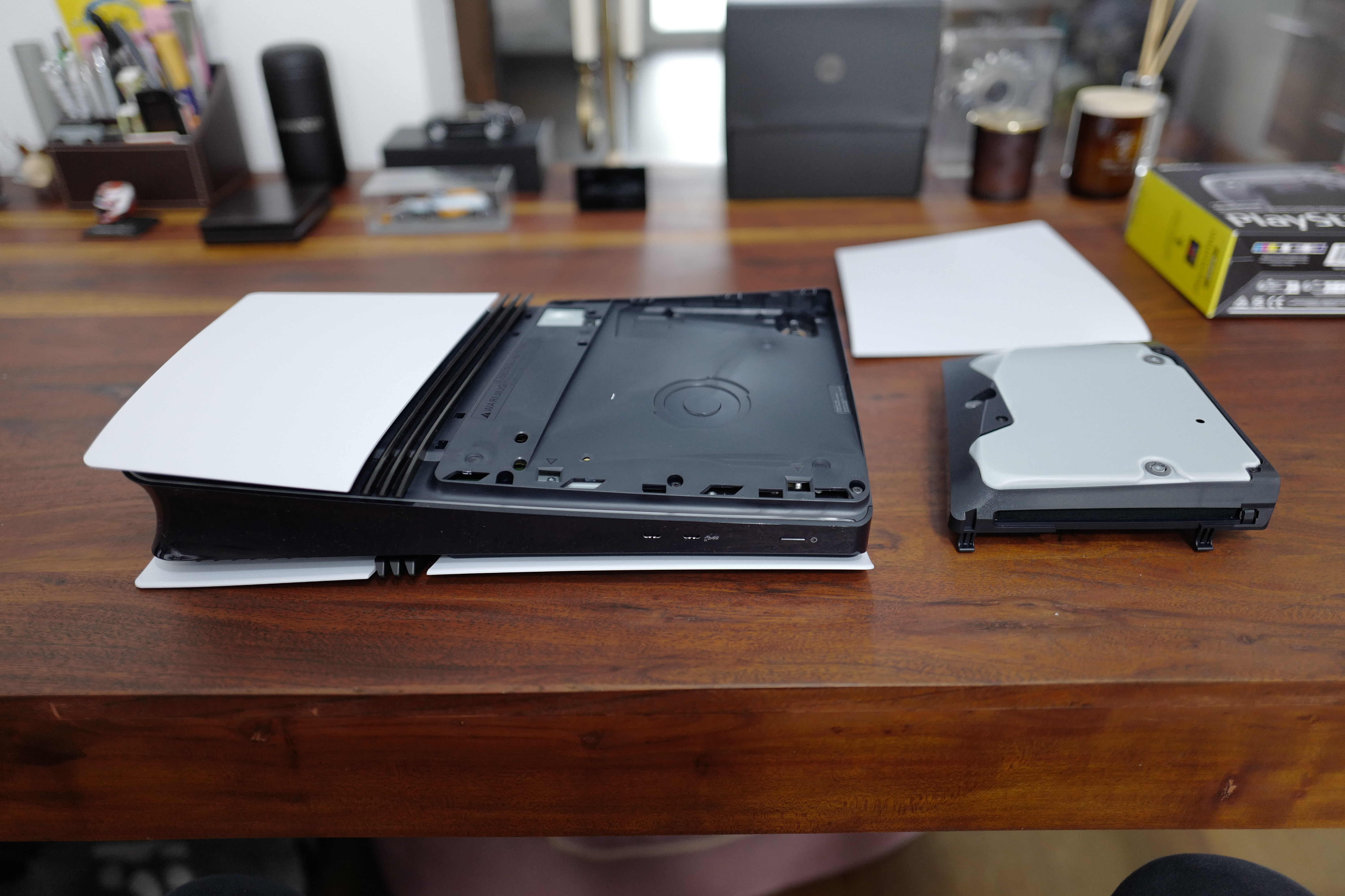 Další věc na kterou jsem narazil je, že PS5 Pro má jiné výdechy a jiný tvar spodní části, díky čemuž není kompatibilní se stávajícími držáky na zeď. Pokud tedy máte PS5 umístěnou na nějakém „wall mountu“ za televizorem, tak budete muset koupit novou verzi s tím, že jsem na celém Amazonu našel jedno jediné řešení, jenž mi aktuálně putuje domů. Co je naopak fajn je, že i když PS5 Pro má 2TB uložiště, nabízí stejně jako PS5 možnost využít vlastní SSD paměť. Tu jsem v PS5 používal a tak jsme si ji jednoduše i s daty pouze přemontoval do PS5 Pro a celkem tak mám k dispozici 3TB paměti.