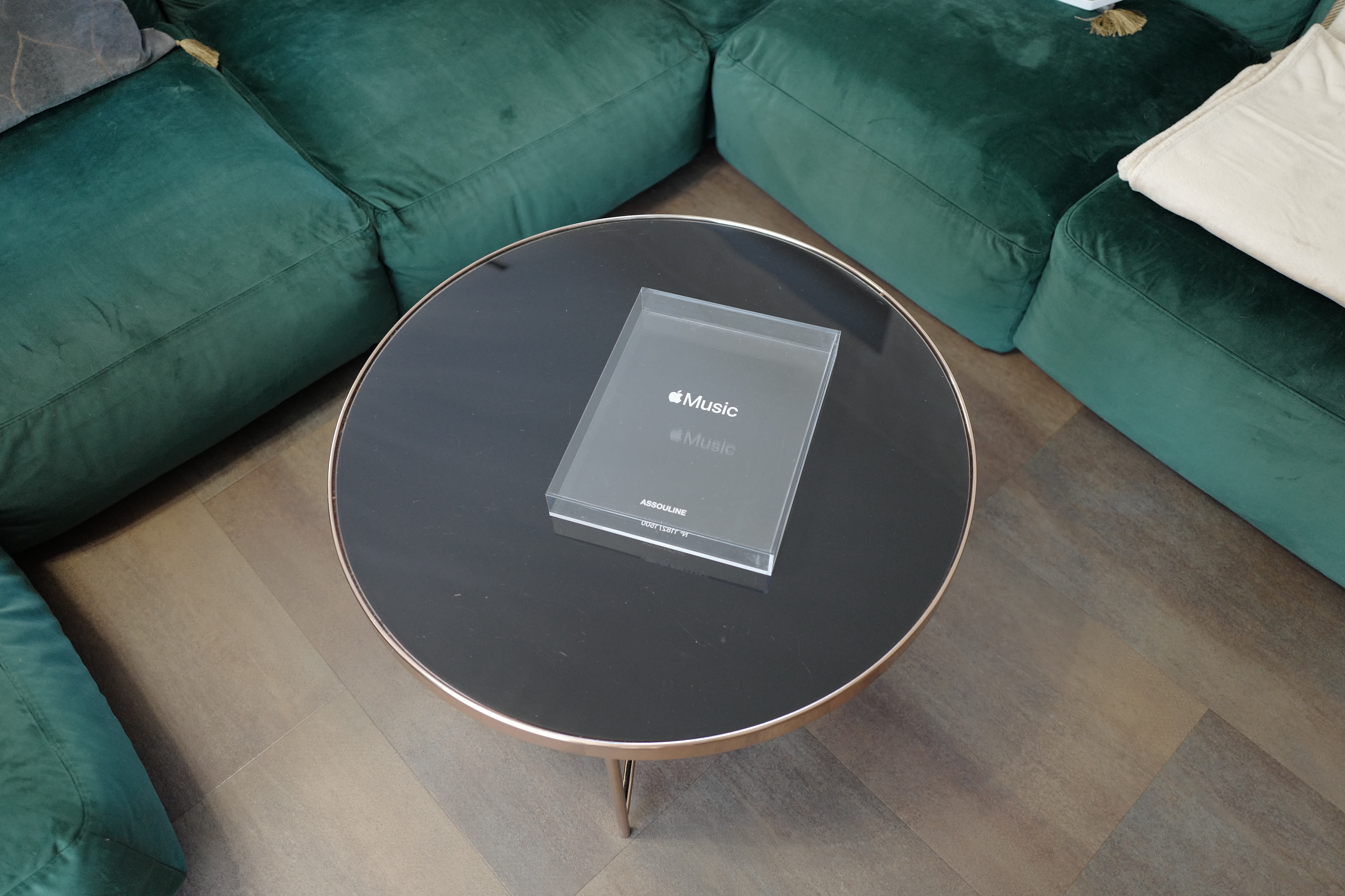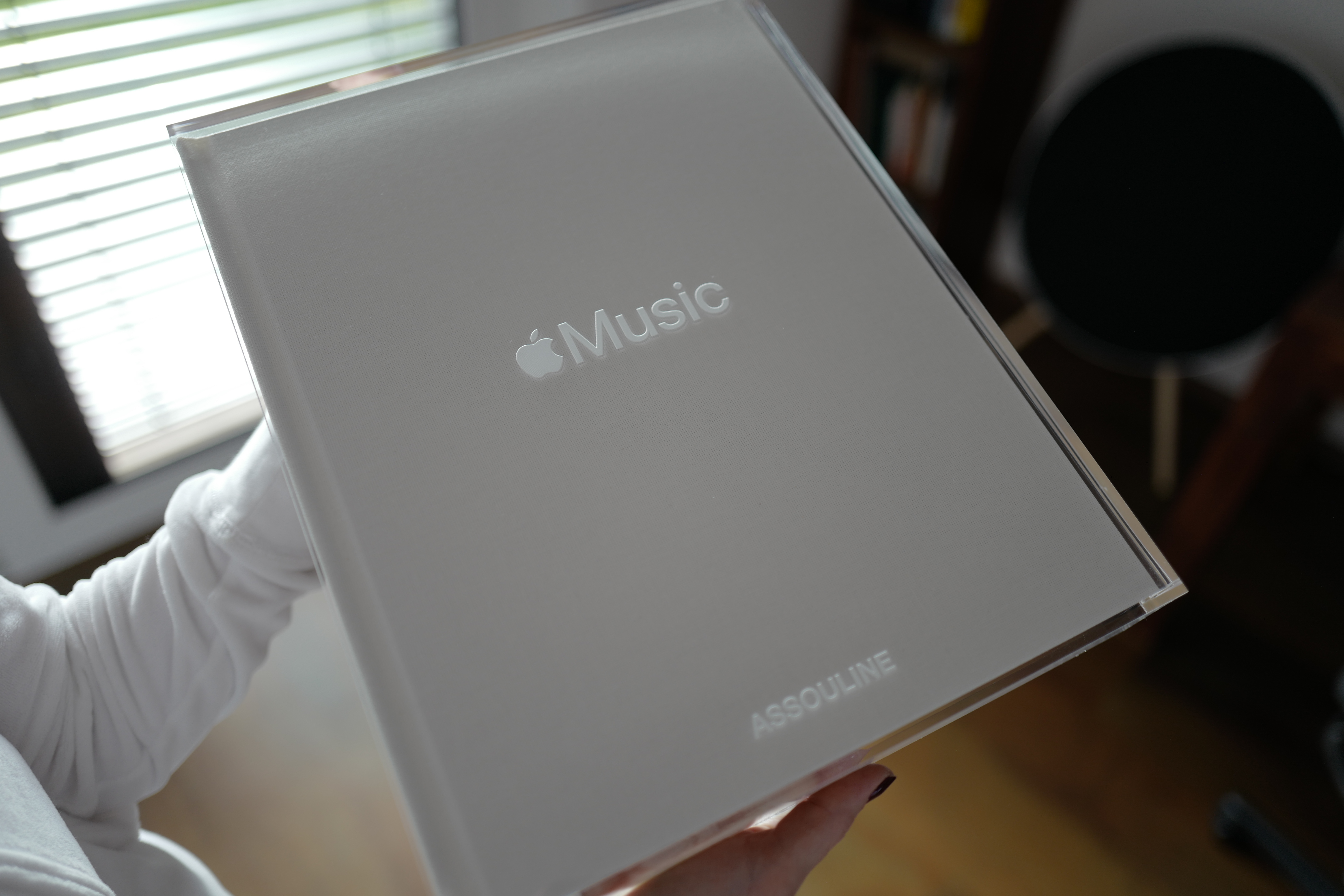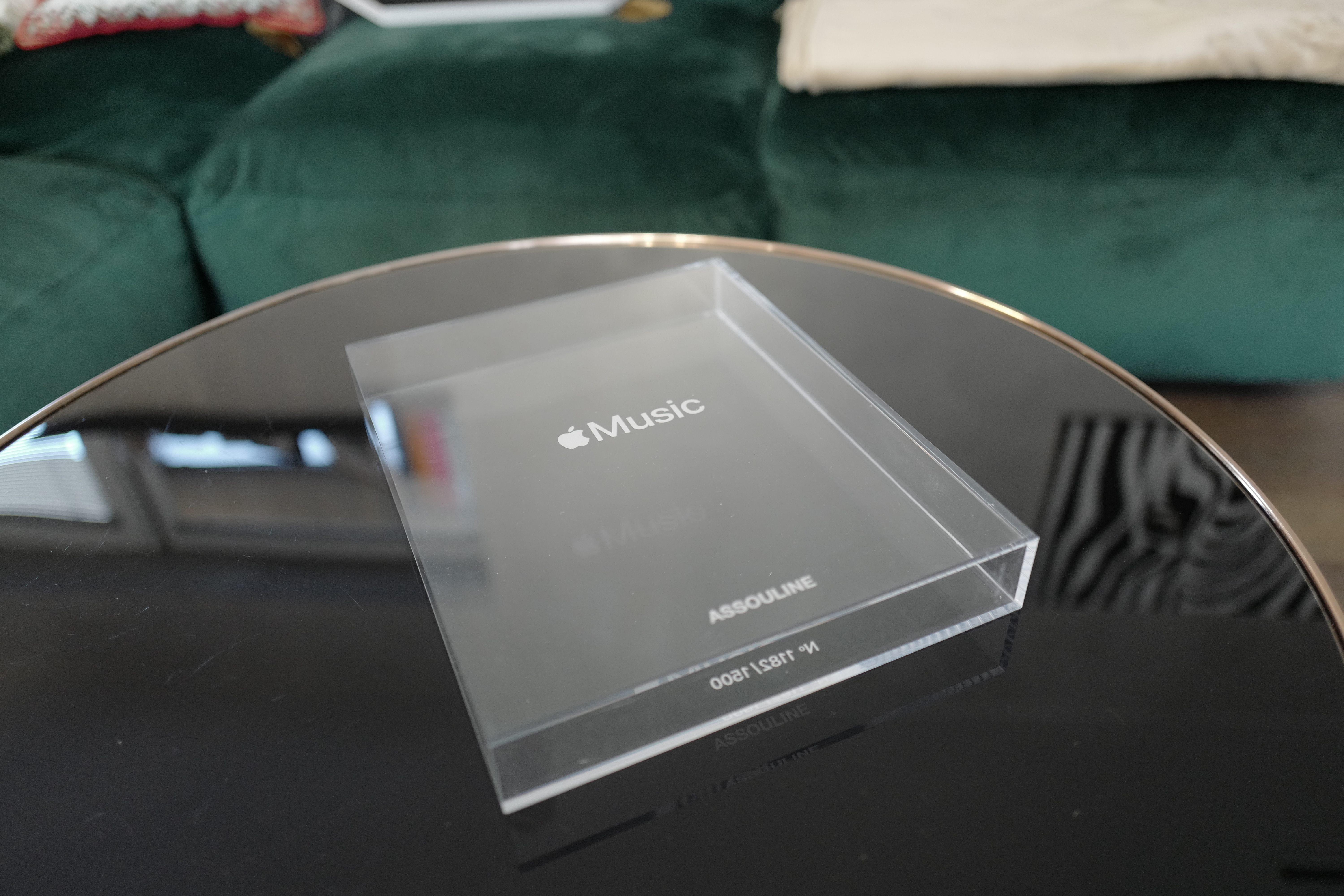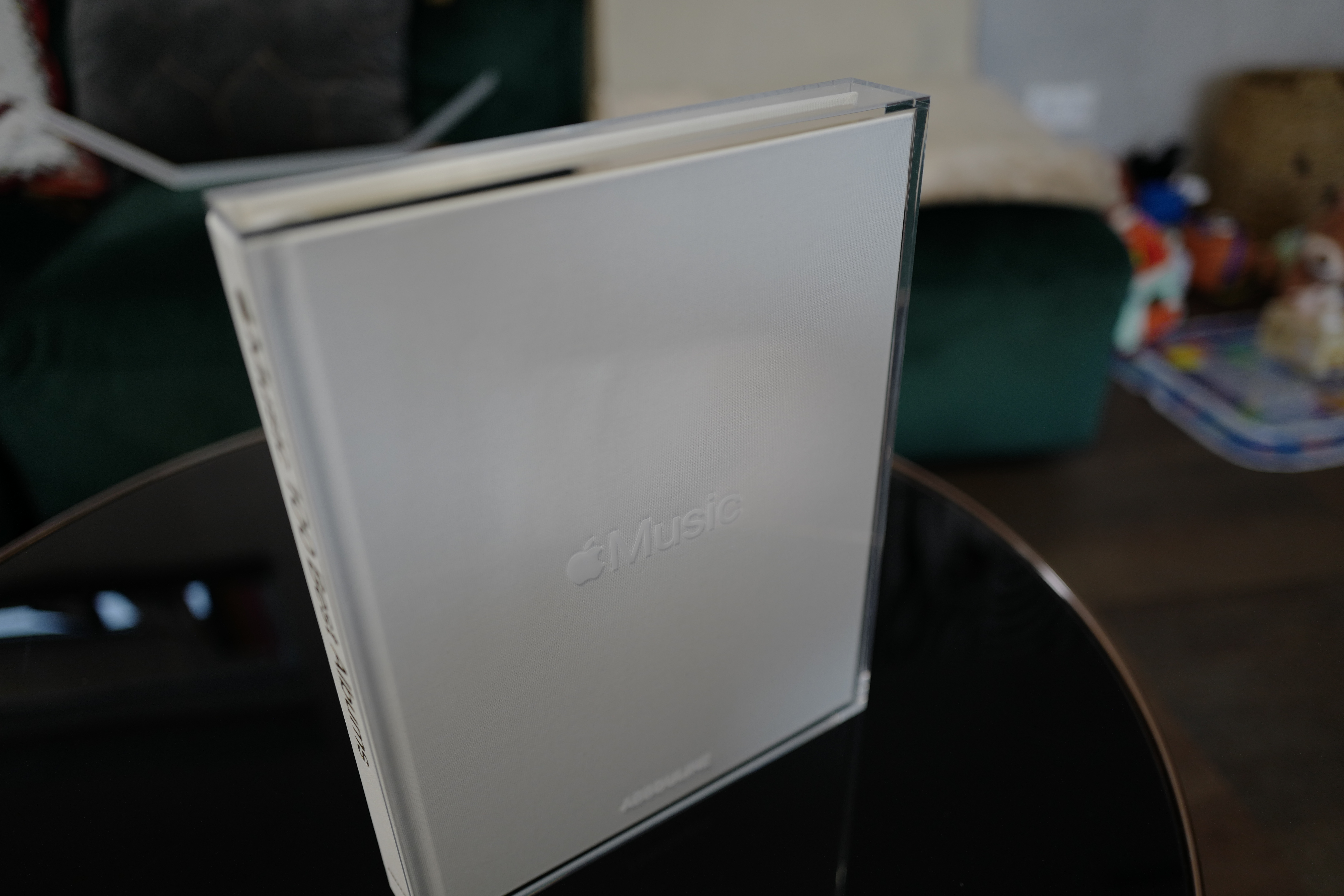 Já mám konkrétně knihu 1182/1500 a kromě krabice to samozřejmě najdete také uvnitř knihy, kde to je dokonce ručně napsáno, a také na plastovém obalu knihy, kde opět vidíte své číslo. S úsměvem na tváři jde říct, že všechen ten plast, který Apple ušetřil v posledních letech při výrobě svých produktů, byl nyní použit na obal oněch 1500 vyrobených knih. Ten je totiž opravdu masivní, pevný, kvalitní, průhledný a hlavně krásný. Evokuje obal CD nebo audio kazety a k Apple Music se skutečně hodí. Jedná se o čirý plastový obal, na kterém najdete pouze logo Apple Music, logo Assouline a na zadní části pak číslo vaší knihy.