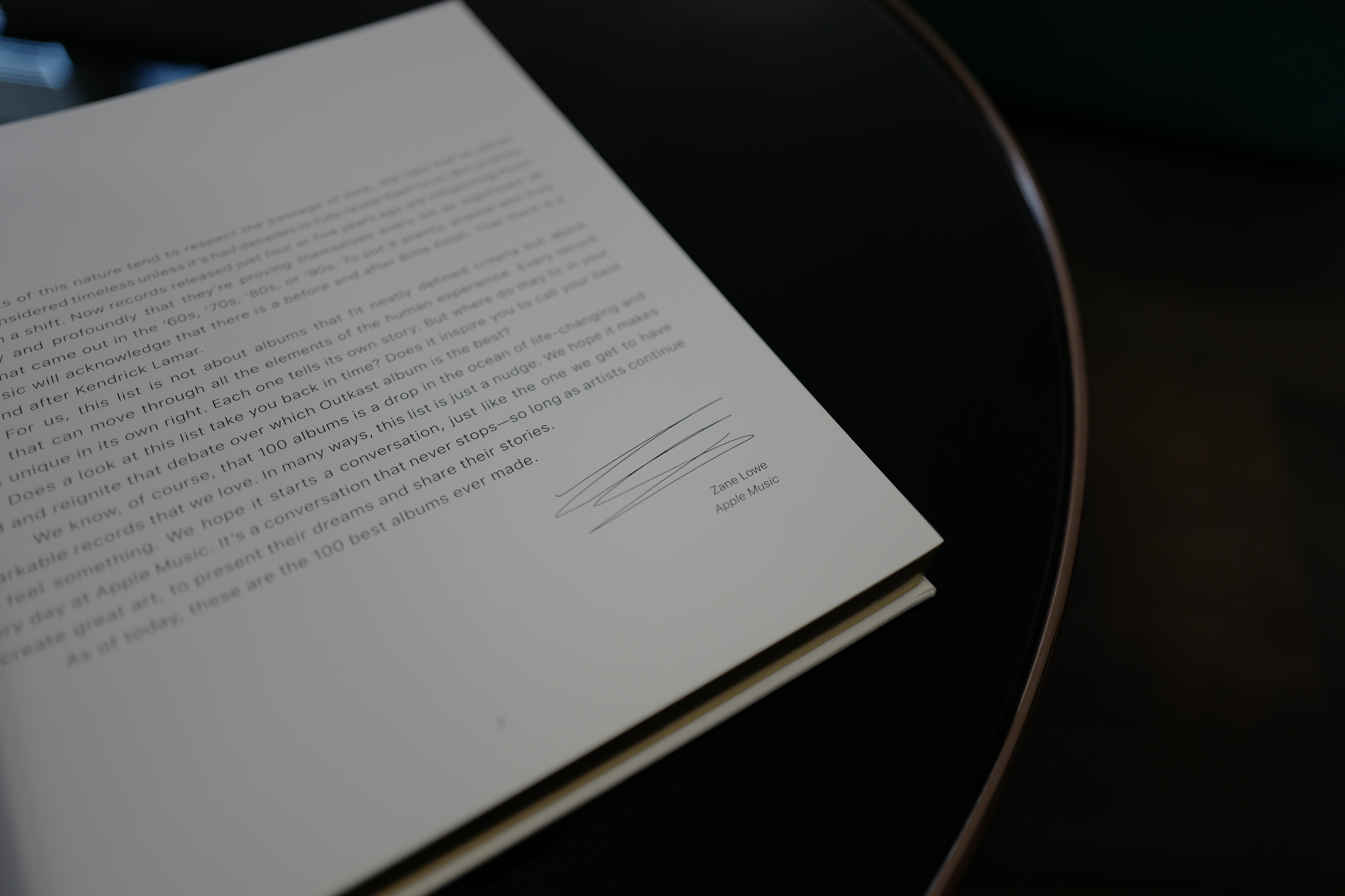 I přesto, že kniha nese název 100 nejlepších alb na Apple Music, tak je to vlastně výběr odborníků Apple Music ve spolupráci se skupinou umělců včetně Maren Morris, Pharrella Williamse, J Balvina, Charli XCX, Marka Hoppuse, Honey Dijon a Nia Archives a také skladatelů, producentů a dalších lidí zainteresovaných v hudebním průmyslu. Nejedná se tedy o 100 nejposlouchanějších alb nebo něco podobného, ale o 100 alb, která vybrali tito lidé.