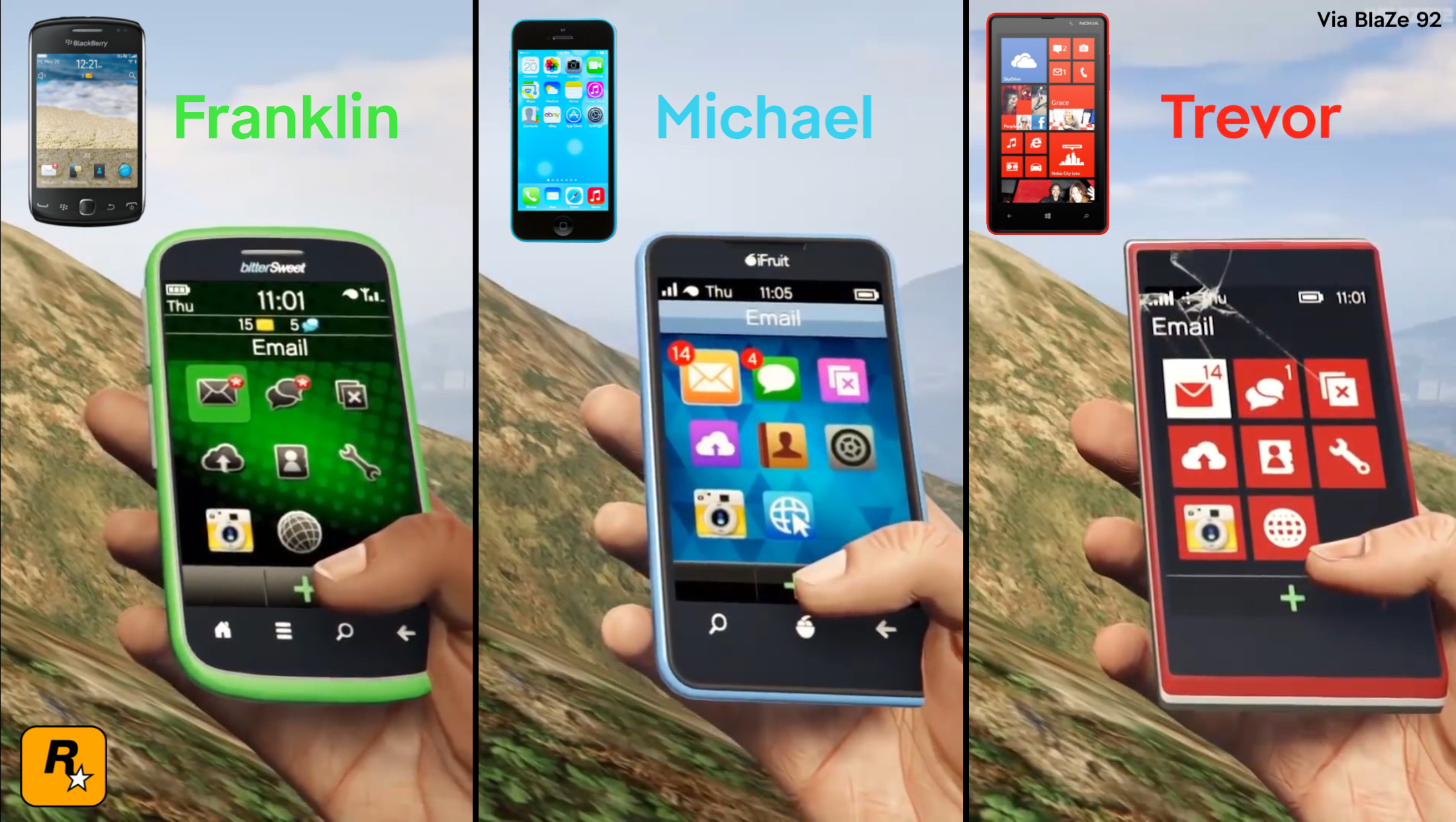 V GTA 5 se vývojáři Rockstar Games postarali o řadu detailů, které skvěle dotvářejí osobnosti tří hlavních protagonistů. Jedním z těchto detailů jsou jejich mobilní telefony, inspirované skutečnými značkami a přizpůsobené charakterům Michaela, Franklina a Trevora. Každý z těchto telefonů slouží nejen jako stylistický doplněk, ale i jako nástroj pro interakci se světem GTA 5. Hráči mohou používat telefony k volání, posílání zpráv, fotografování nebo přístupu na internet. Navíc telefon umožňuje hráčům přijímat mise, sledovat události ve hře nebo využívat aplikace jako Snapmatic (parodie na Instagram).