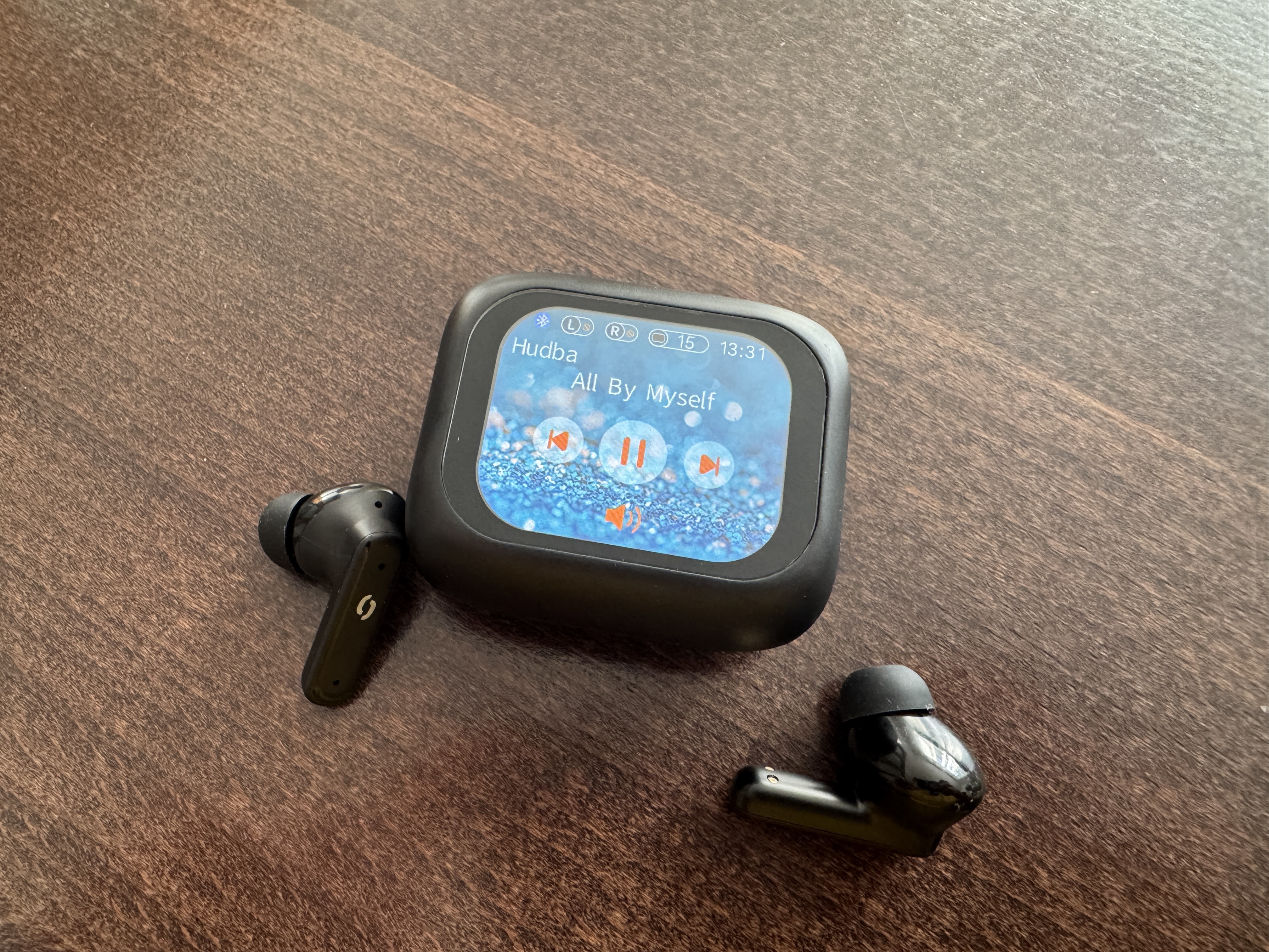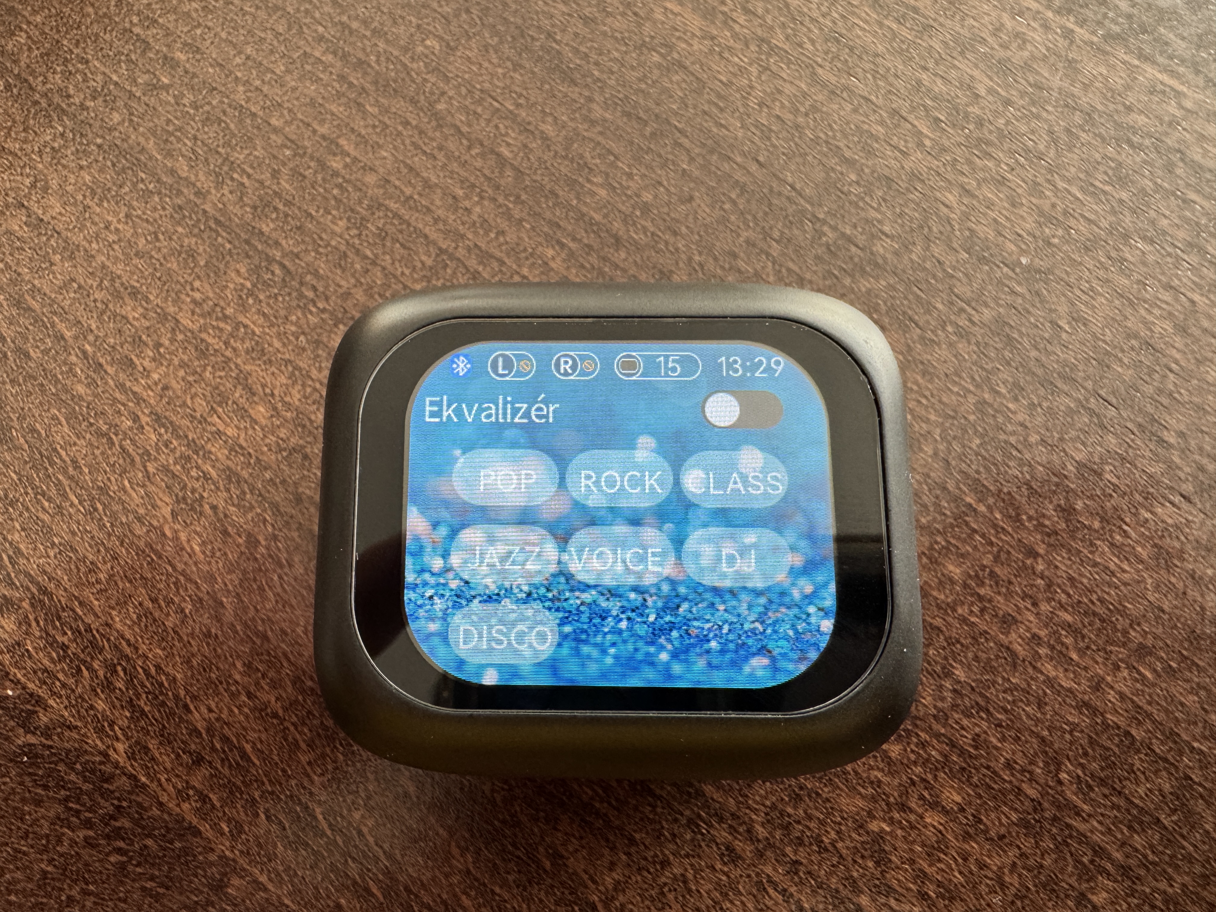 Na první pohled klasická krabička v sobě ukrývá LCD displej. Jak píši výše, displej v podstatě nahrazuje mobilní aplikaci. Kromě aktuálního stavu baterie krabička funguje též jako dálkový ovladač na fotoaparát, svítilna spouštěč hlasového asistenta, ekvalizér se 7 přednastavenými profily, stopky, časovač či ovladač hudby. Ačkoli displej není nejjemnější. Je dostatečně čitelný a funguje skvěle. Prostředí je svižné a v českém jazyce. Za mě je toto řešení velmi příjemným překvapením. Krabičku dost často nosíte v kapse třeba i s klíči. Časem bych se tedy obával možného poškození displeje. Proto bych doporučil z displeje nesundávat fólii.