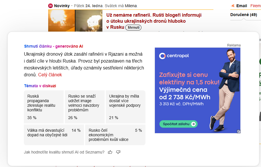 „Na možnosti zobrazit shrnutí článku s pomocí AI jsme pracovali více než rok. Samo o sobě to není pro SeLLMu složitý úkol, ale zajistit, aby vše fungovalo automaticky bez zásahu editora a přešlapů běžně spojených s generativními modely, bylo složitější,“ říká Marek Vacek, produktový manažer domovské stránky Seznam.cz.