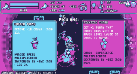 Tummy má hlad. Potřebuje sladkosti k tomu, aby přežil. Naštěstí je Halloween a toulá se tu spousta dětí s kapsami naditými drahocennými sladkostmi. Užijte si hru plnou strašení a mlsání, ale buďte opatrní – děti se jen tak nedají.