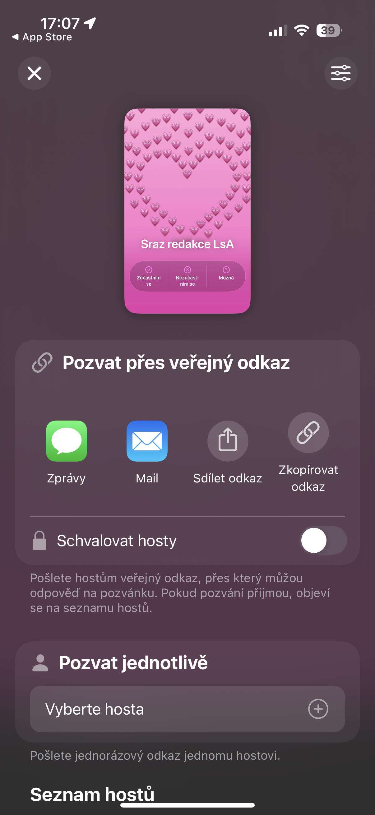Pořadatelé mají vše pevně ve svých rukách. Mohou své akce snadno prohlížet a spravovat, posílat odkaz na pozvánku, podívat se, kdo potvrdil účast, a vybírat, co všechno se má zobrazit v přehledu, například pozadí akce nebo adresa místa konání. Hosté pak mohou na pozvánku odpovědět v mobilní aplikaci na iPhonu nebo v její webové verzi, aniž by si museli pořídit předplatné iCloud+ nebo založit účet u Applu. Účastníci mají kontrolu nad tím, co se o nich ukazuje ostatním, a také mohou událost akci kdykoli opustit nebo nahlásit.