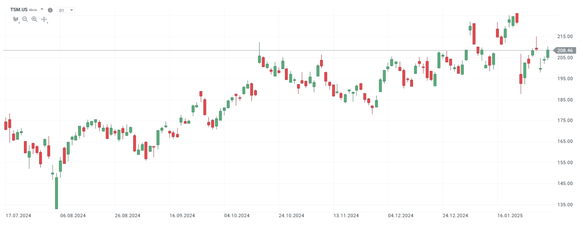 TSM.US, denní svíčky
