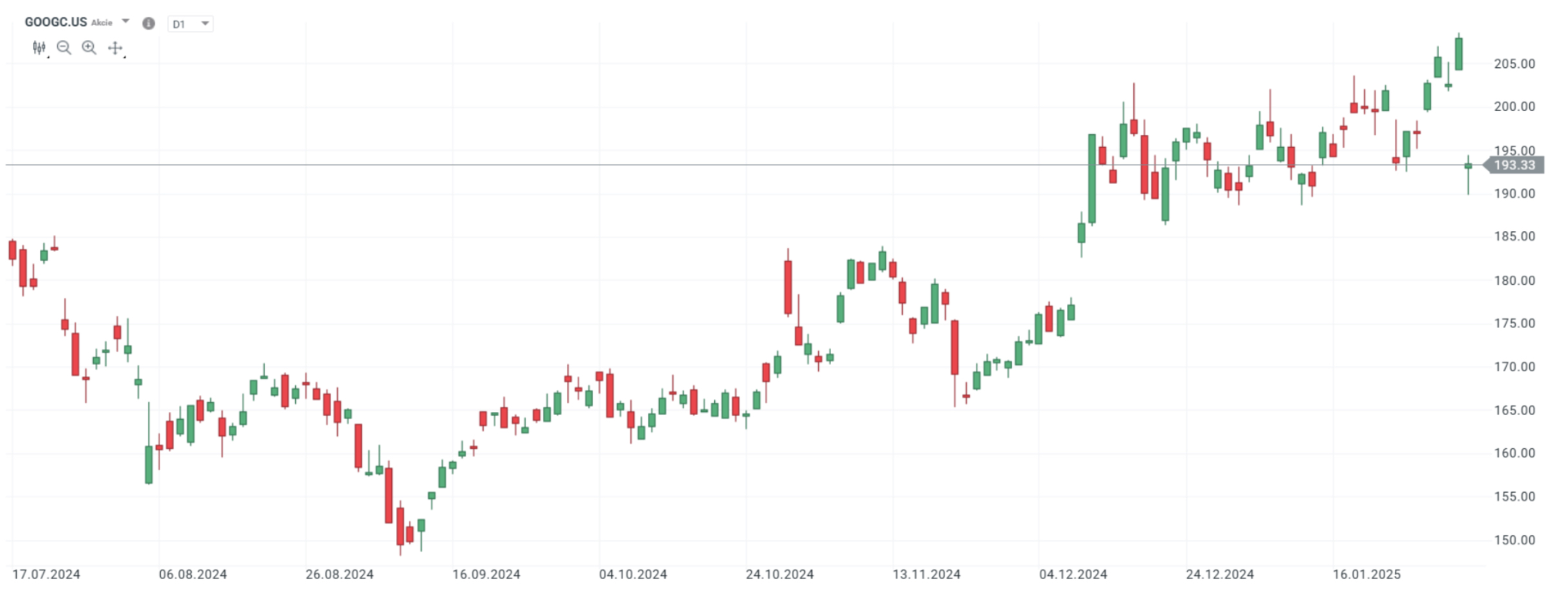 GOOGC.US, denní svíčky