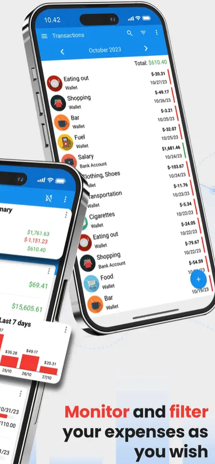 S aplikací Wallet máte své finance pevně v rukou. Intuitivní rozhraní a automatické synchronizace s vašimi bankovními účty vám umožní sledovat každý váš výdaj. Díky přehledným grafům a tabulkám rychle zjistíte, kam vaše peníze míří a kde byste mohli ušetřit. Wallet je jako váš osobní finanční poradce, který vám pomůže dosáhnout vašich finančních cílů.